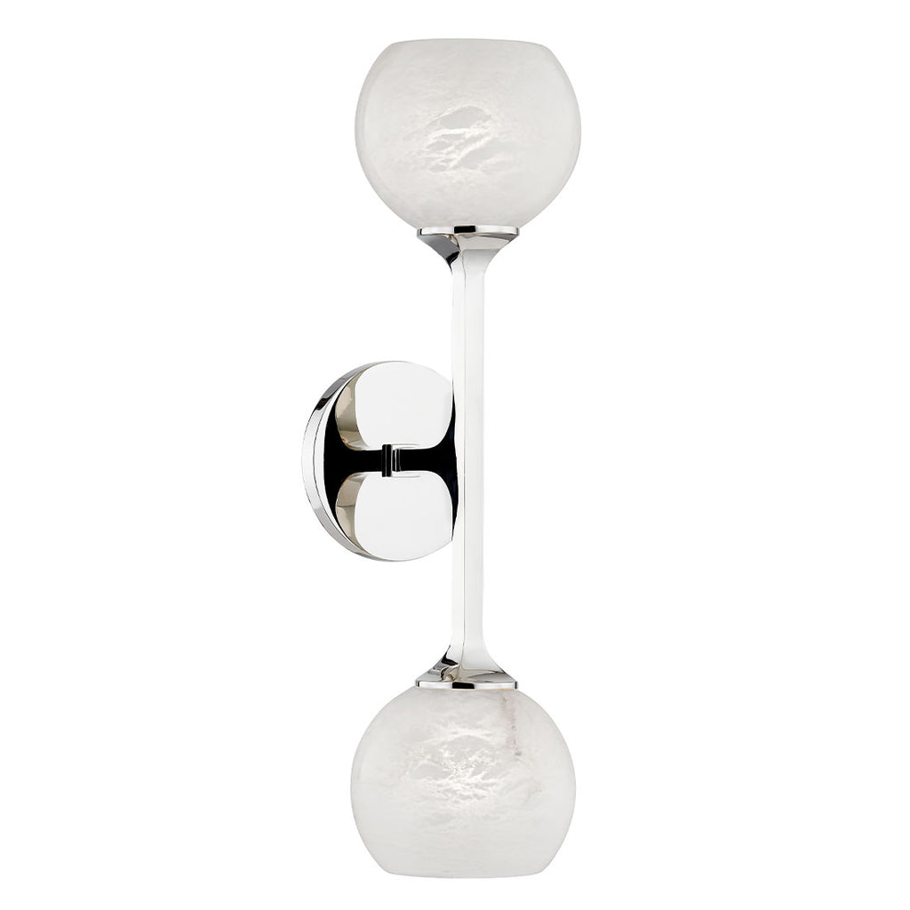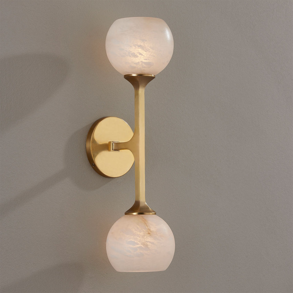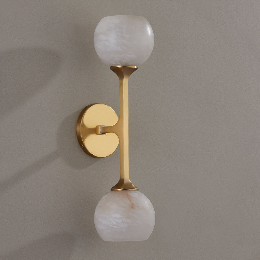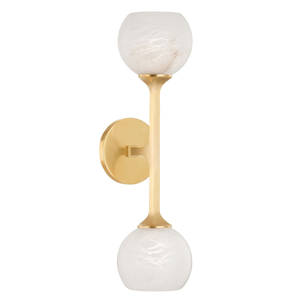 Renowned for built-to-last quality with a timeless feel, Hudson Valley offers a modern lighting collection with elegant touches, recalling vintage inspiration. Gorgeously shaped cast metal arms in Aged Brass or Polished Nickel hold beautiful alabaster globe shades to create the Hudson Valley Melton wall sconce's elegant, luxurious design. A soft glow fills the alabaster and accentuates the material's unique veining. Available as a 1-light sconce or 2-light that can be mounted horizontally or vertically.