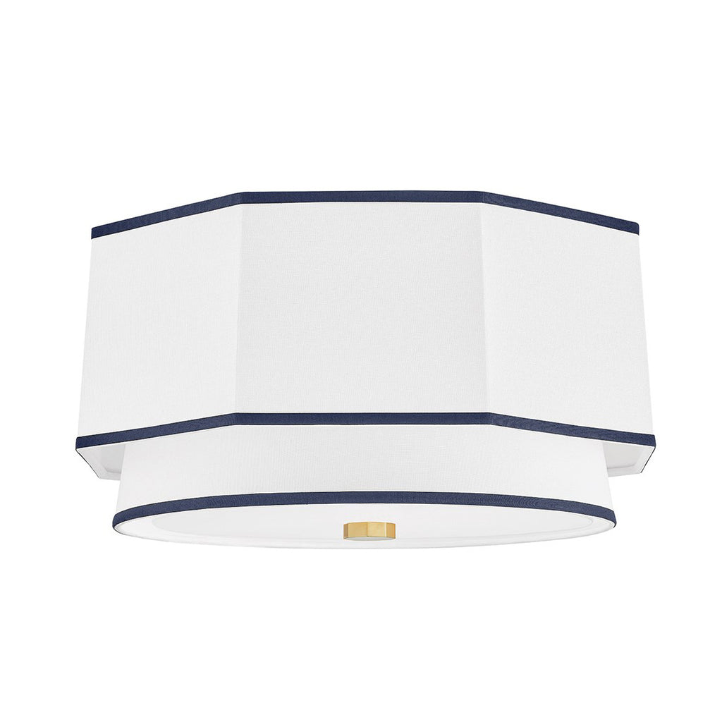 Faceted, layered, and accented with dark welting, the Hudson Valley Riverdale flush ceiling mount plays with geometric contrast and nautical color schemes to bring decorative impact and soft light to any space.