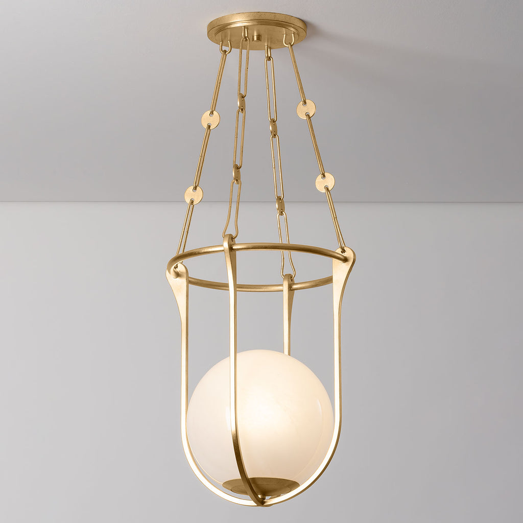 Renowned for built-to-last quality with a timeless feel, Hudson Valley offers a modern lighting collection with elegant touches, recalling vintage inspiration. Modern meets rustic in this nautical-inspired flush mount. A delicate Vintage Gold Leaf cage, gracefully swirling cloud glass orb and intricate suspension chains converge to create this mesmerizing pendant light. Exhibiting a jewelry-like appearance, Verbank is enhanced by its subtle details, including circular ornaments on the chains and Art Deco-inspired curves. Like a planetary body glowing in the sky, this is a truly magical lighting experience.
