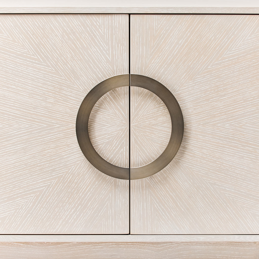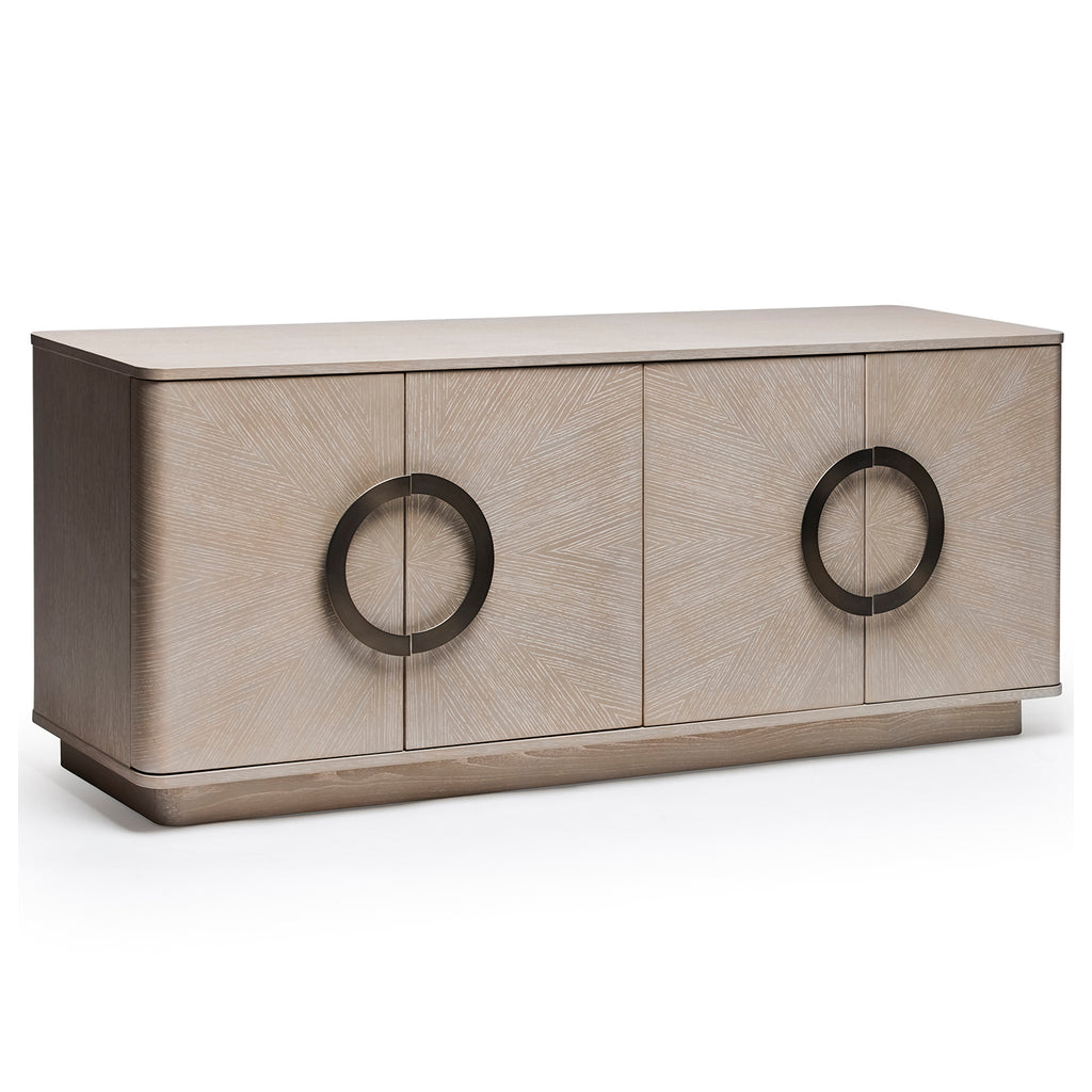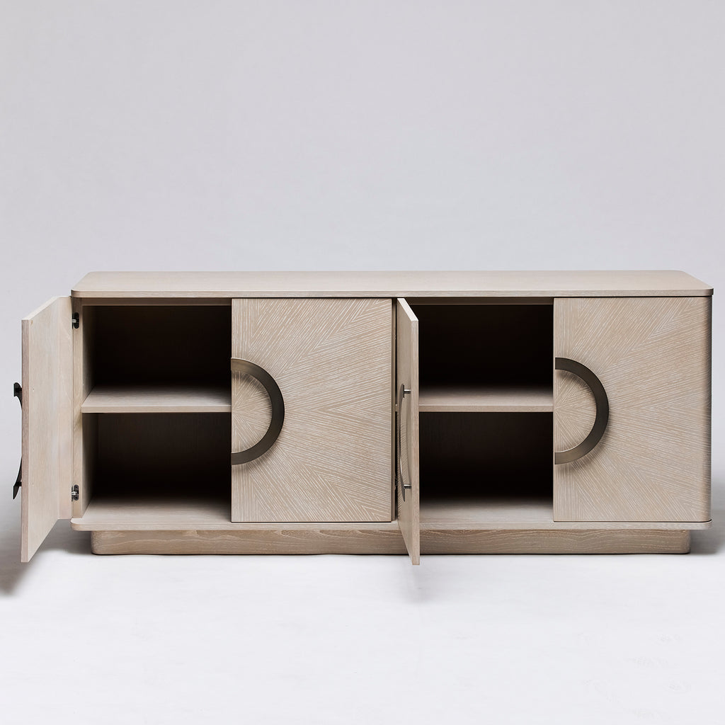 Giving swanky glam vibes, the Cabot Credenza boasts a cliffside hue and bold steel hardware in a brushed steel finish. This item is made of solid wood. Item will not be exactly as pictured, subtle deviations in hue after finishing can be expected as a result of natural variations in coloration of the base material.