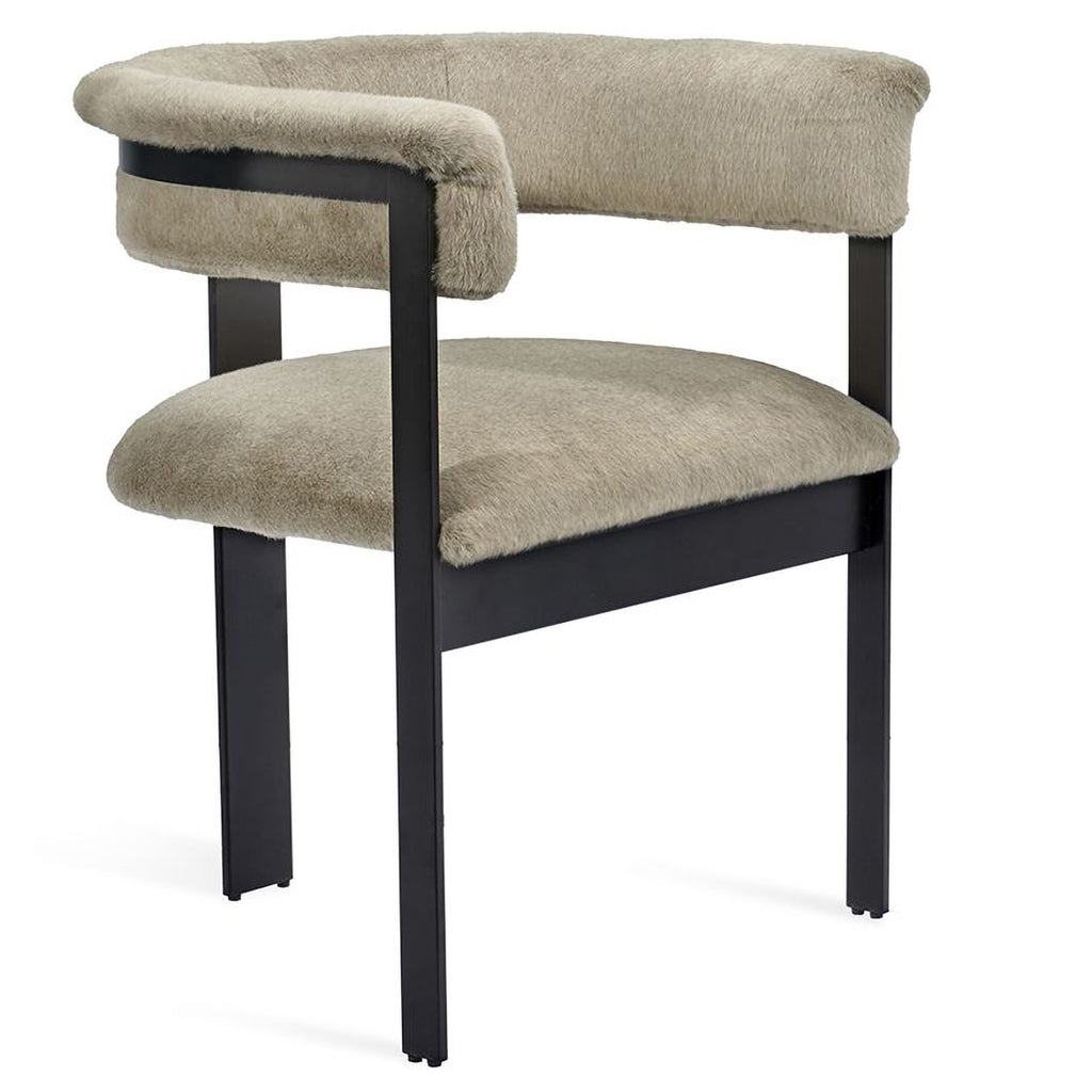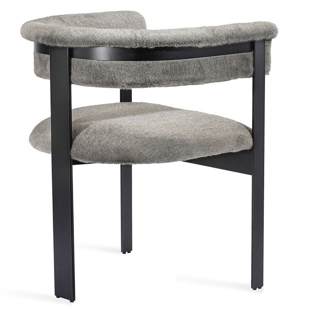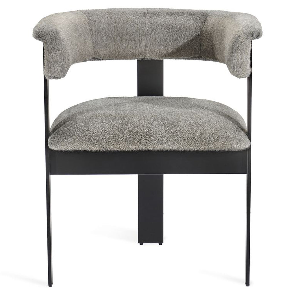 Interlude Home's worldly style brings what's now and next to the home with high fashion designed for everyday function. Boasting an art moderne influence, the Darcy Dining Chair features a cream leather, taupe leather, gray leather or natural gray hide seat and a streamlined stainless steel frame in a shiny brass, polished nickel or antique bronze finish.