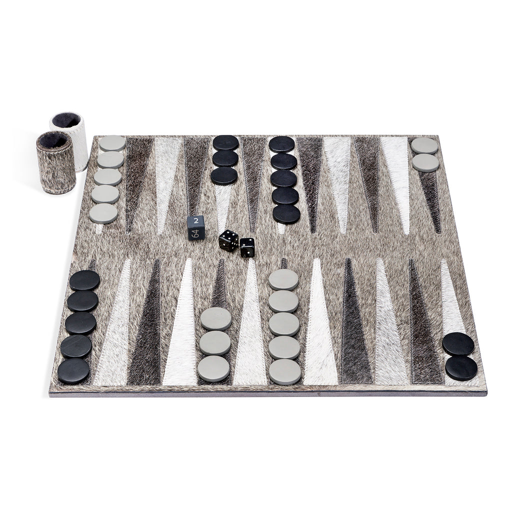 Interlude Home's worldly style brings what's now and next to the home with high fashion designed for everyday function. A stylish take on a classic game, the Interlude Home Hampton Backgammon Set is fashioned in shades of natural grey hide with leather pieces.