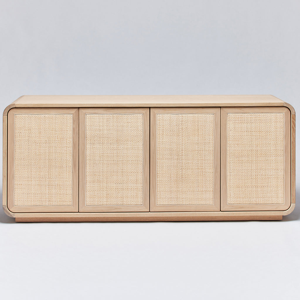 With the pairing of saddle-finished oak and blonde rattan, the Marsh Credenza and its midcentury vibes make for an easy breezy addition.With the pairing of saddle-finished oak and blonde rattan, the Marsh Credenza and its midcentury vibes make for an easy breezy addition.