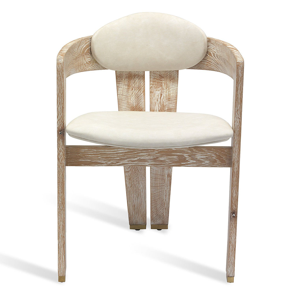 Interlude Home's worldly style brings what's now and next to the home with high fashion designed for everyday function. A distressed charcoal, light gray or cream faux leather seat perfectly complements the charcoal ceruse, taupe ceruse or whitewash oak finished wood frame of the eye-catching Maryl Dining Chair.