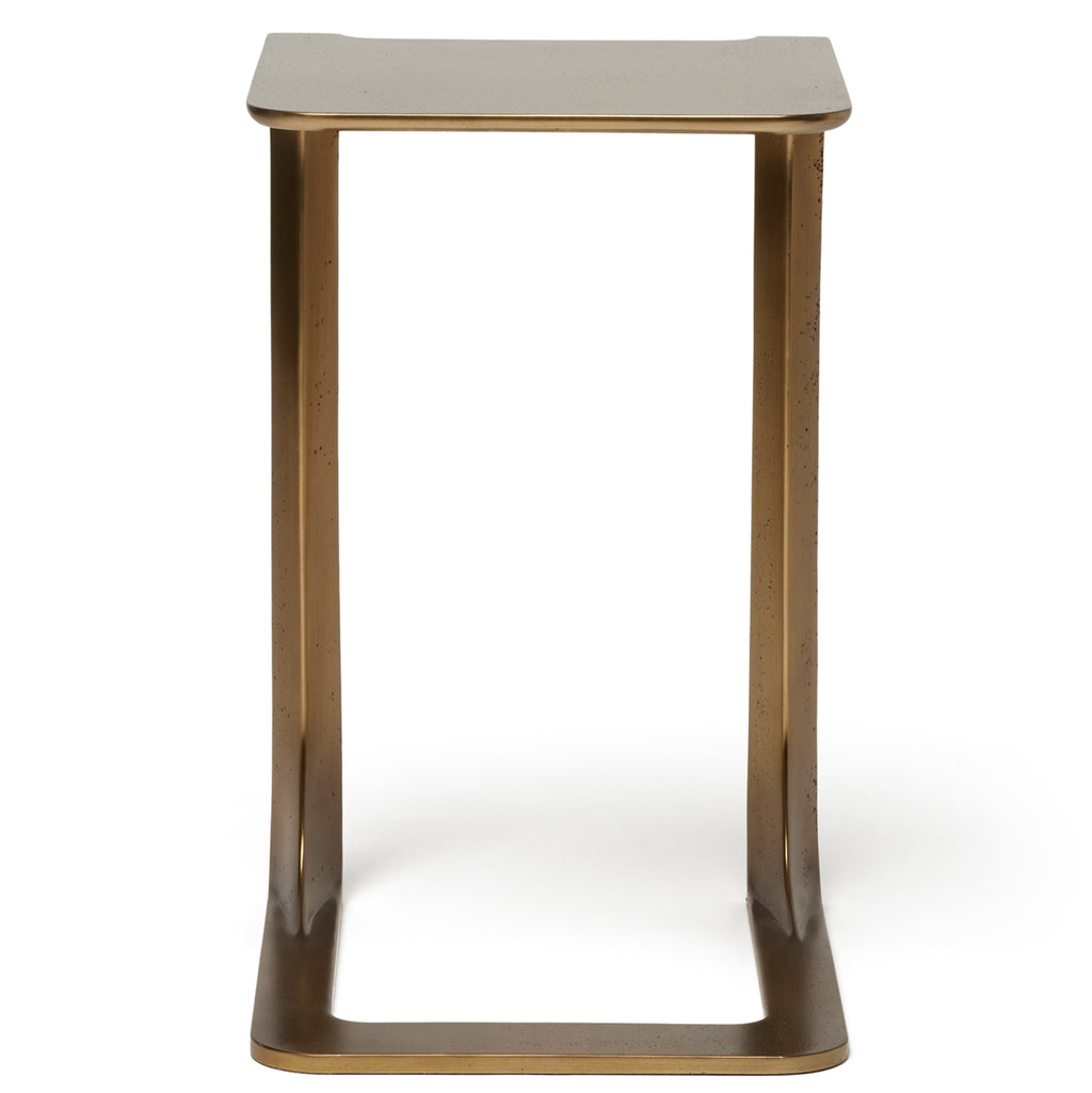 The versatile Oxford Hugging Table becomes an eye-catching, sculptural statement when it's crafted of metal in golden bronze.