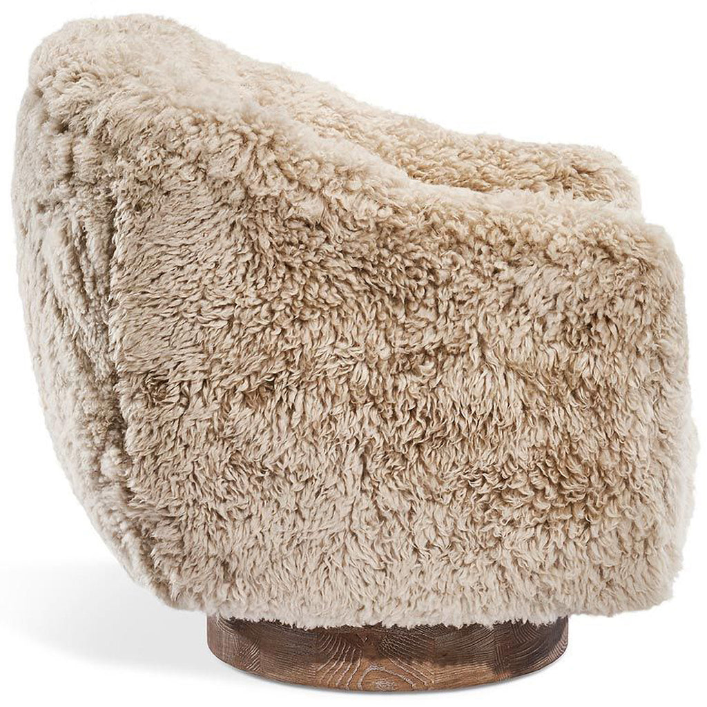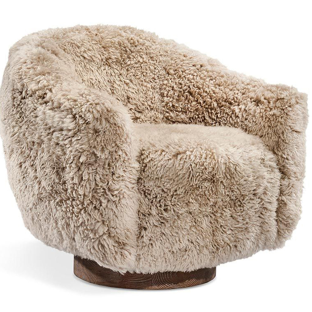 Featuring tibetan lambskin or faux shearling and an ash base, the Simone Swivel Chair effortlessly combines comfort and style to stunning effect. This item is made of solid wood. Item will not be exactly as pictured, subtle deviations in hue after finishing can be expected as a result of natural variations in coloration of the base material.