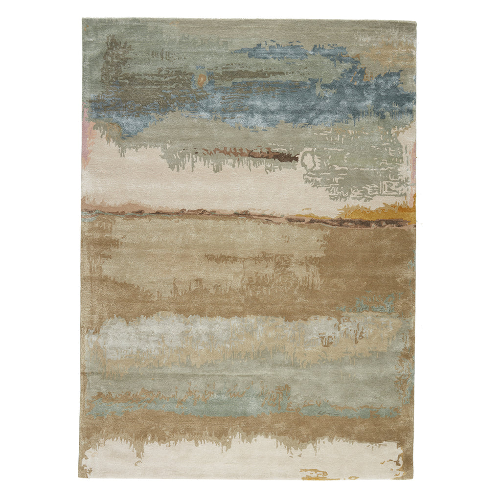With a whimsical spirit and sophisticated flair, the Jaipur Genesis collection features an assortment of hand-tufted rugs sure to liven any contemporary home. Painterly perfection describes the Juna rug. An abstract design in soft earthy hues and hints recall an elegant landscape motif, highlighted in lustrous viscose and plush wool.