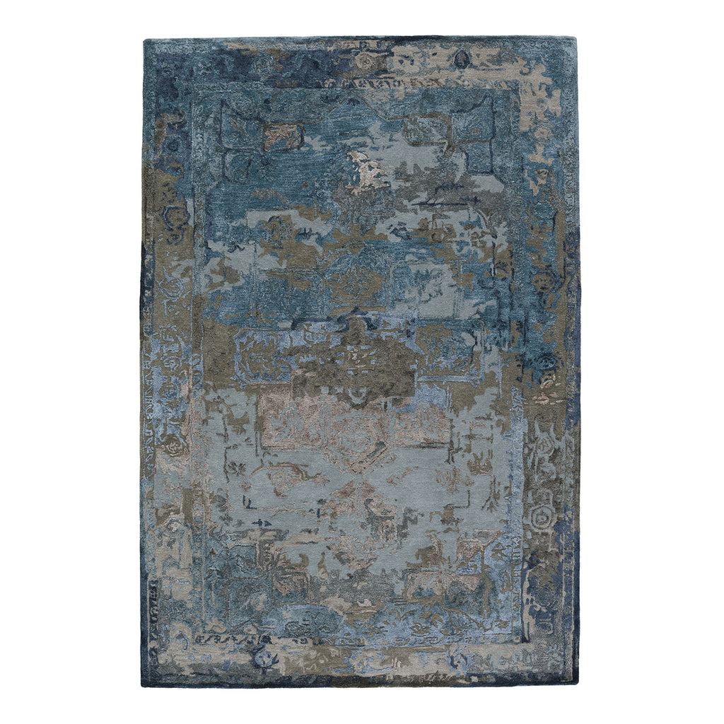 The Jaipur Living Citrine collection is an assortment of distressed Old World patterns reinterpreted for modern design. The hand-tufted Margot rug features a distressed center medallion in calming hues of blue, dark gray, and silver. Made of wool and viscose, this timeless rug boasts an ultra-soft feel and elegant sheen.