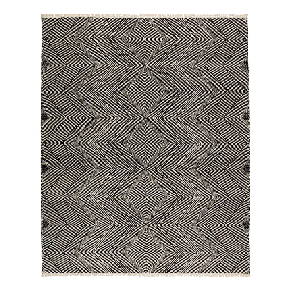 The handwoven Jaipur Living Satori collection showcases dynamic, global designs with mesmerizing linear details and geometric motifs. The Galexia rug features a versatile, neutral palette and an intricate tribal and diamond pattern. The short fringe detail adds texture to this black and cream-colored piece. This Moroccan style area rug fits perfectly in high traffic areas such as entryways, halls, and living spaces.