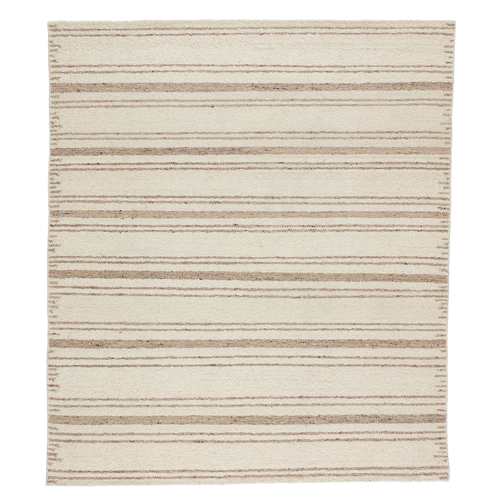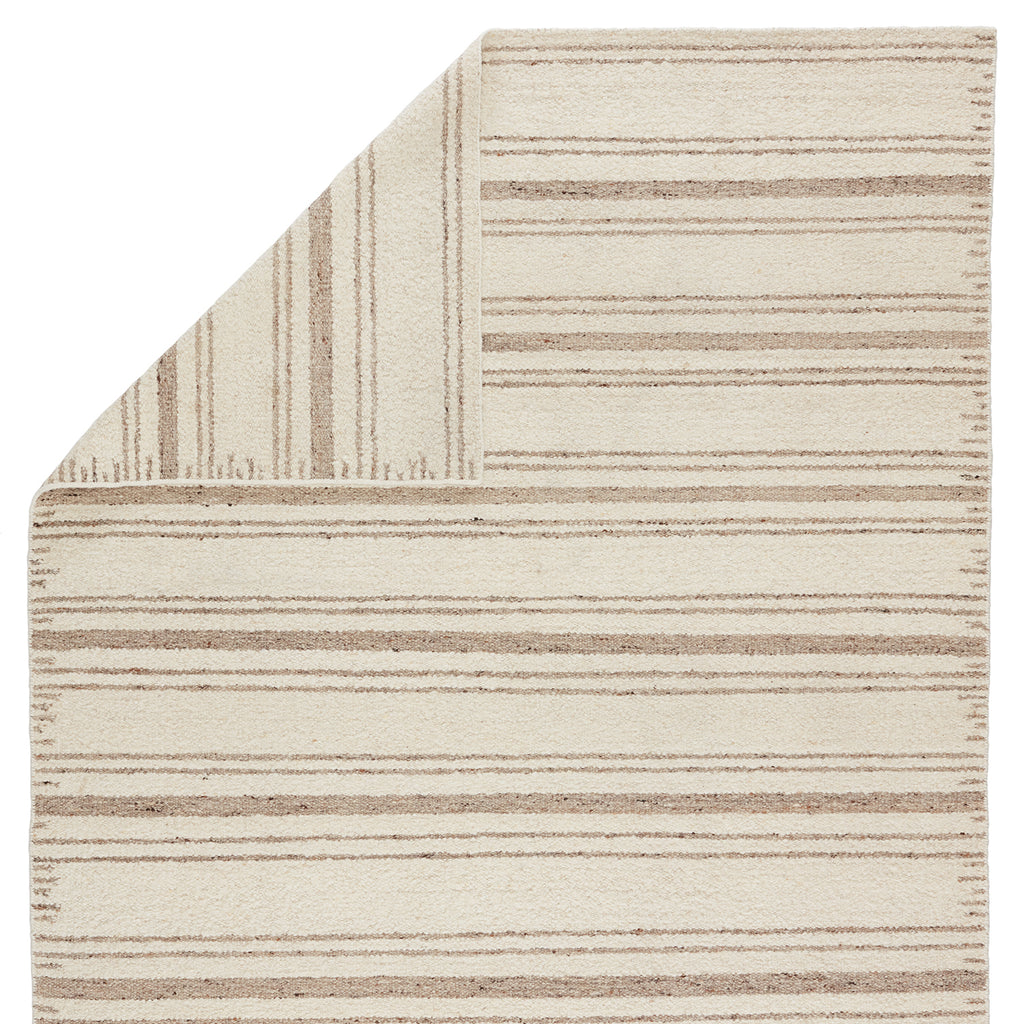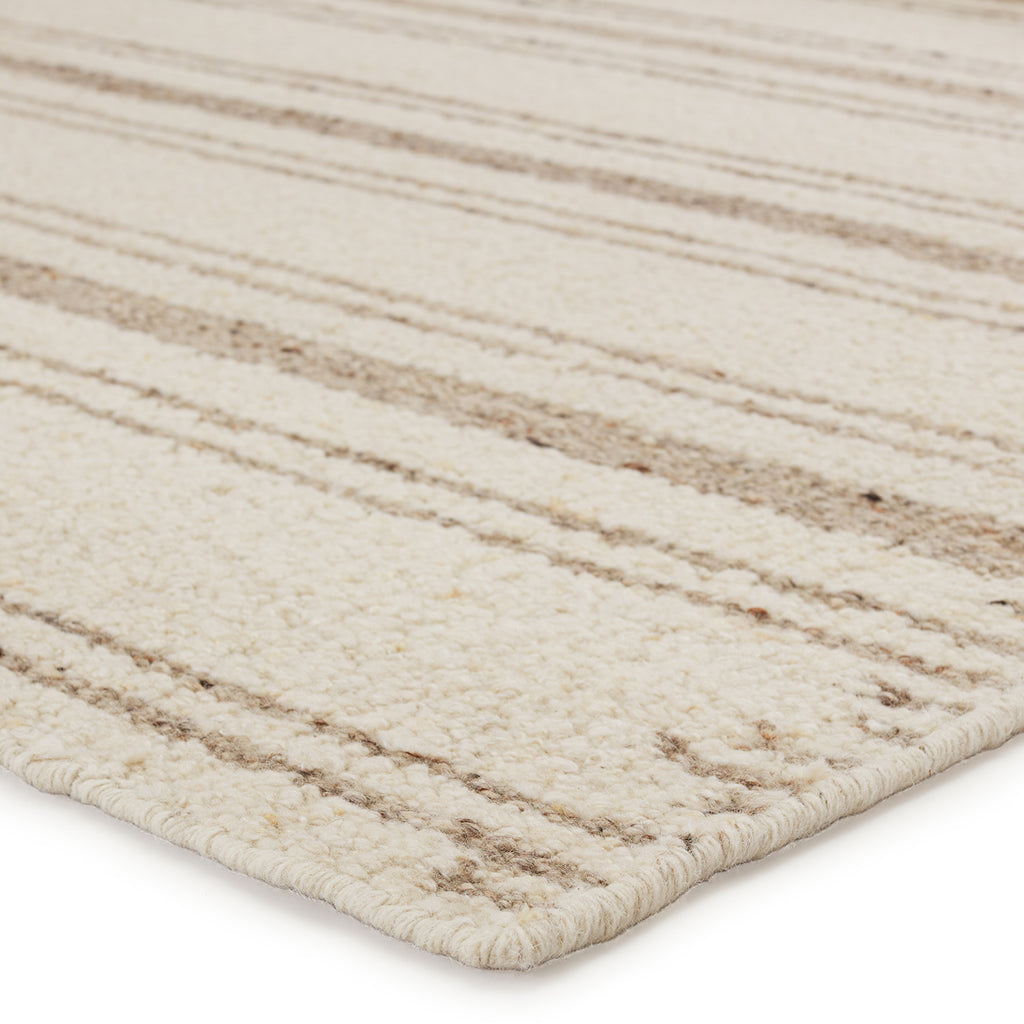 Rich with texture, the Jaipur Mendoza collection expresses modern simplicity and inviting appeal. This rug boasts a re-invented kilim look with an on-trend shearling style and relaxed, neutral hues. Hand-loomed of soft and durable wool, this cozy rug features a colorway of ivory and tan with flecks of deep brown. The unique ticking stripe design offers clean-lined yet eye-catching pattern to any space.