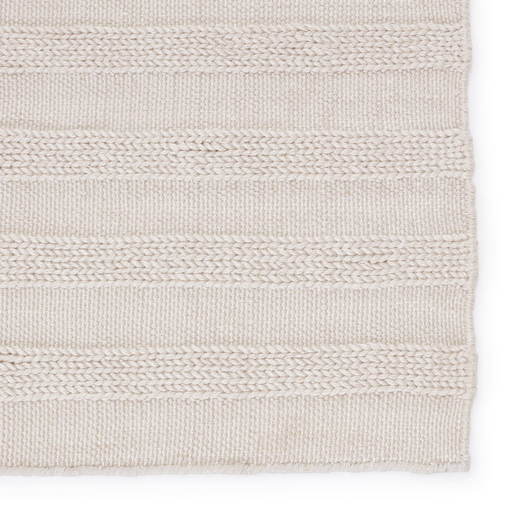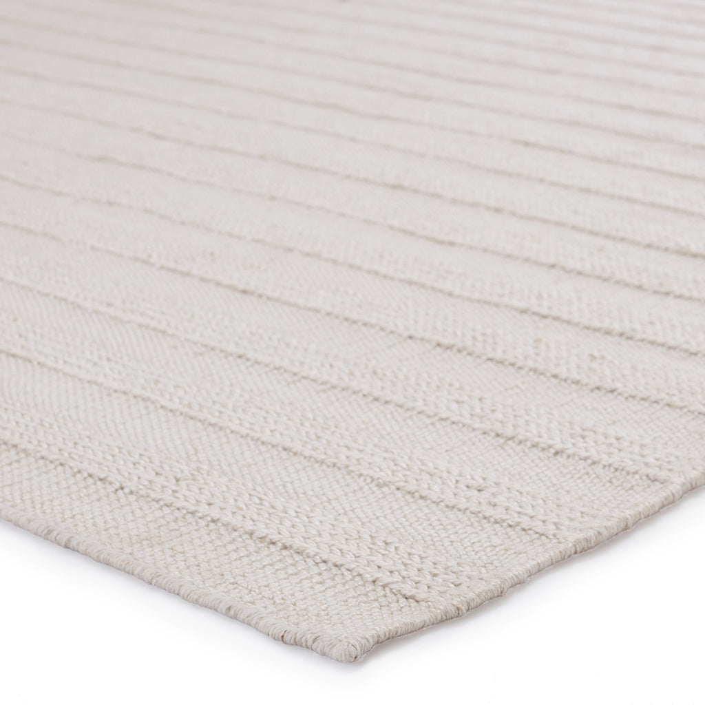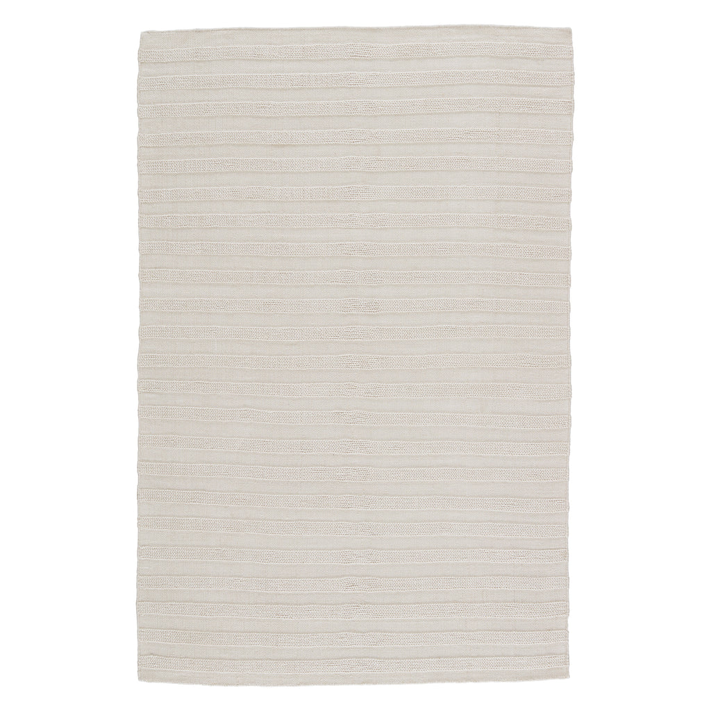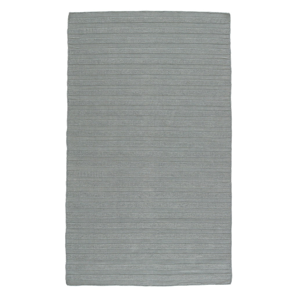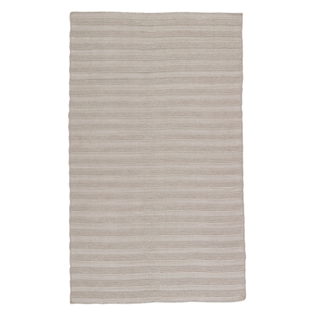 The handwoven Jaipur Santa Barbara collection features a low-profile look and performance-driven quality. The Miradero area rug showcases a textural stripe design in a light gray colorway for a classic, neutral look. Crafted of PET yarn, or recycled plastic, this durable and textured rug brings warmth and inviting appeal to indoor and outdoor spaces.