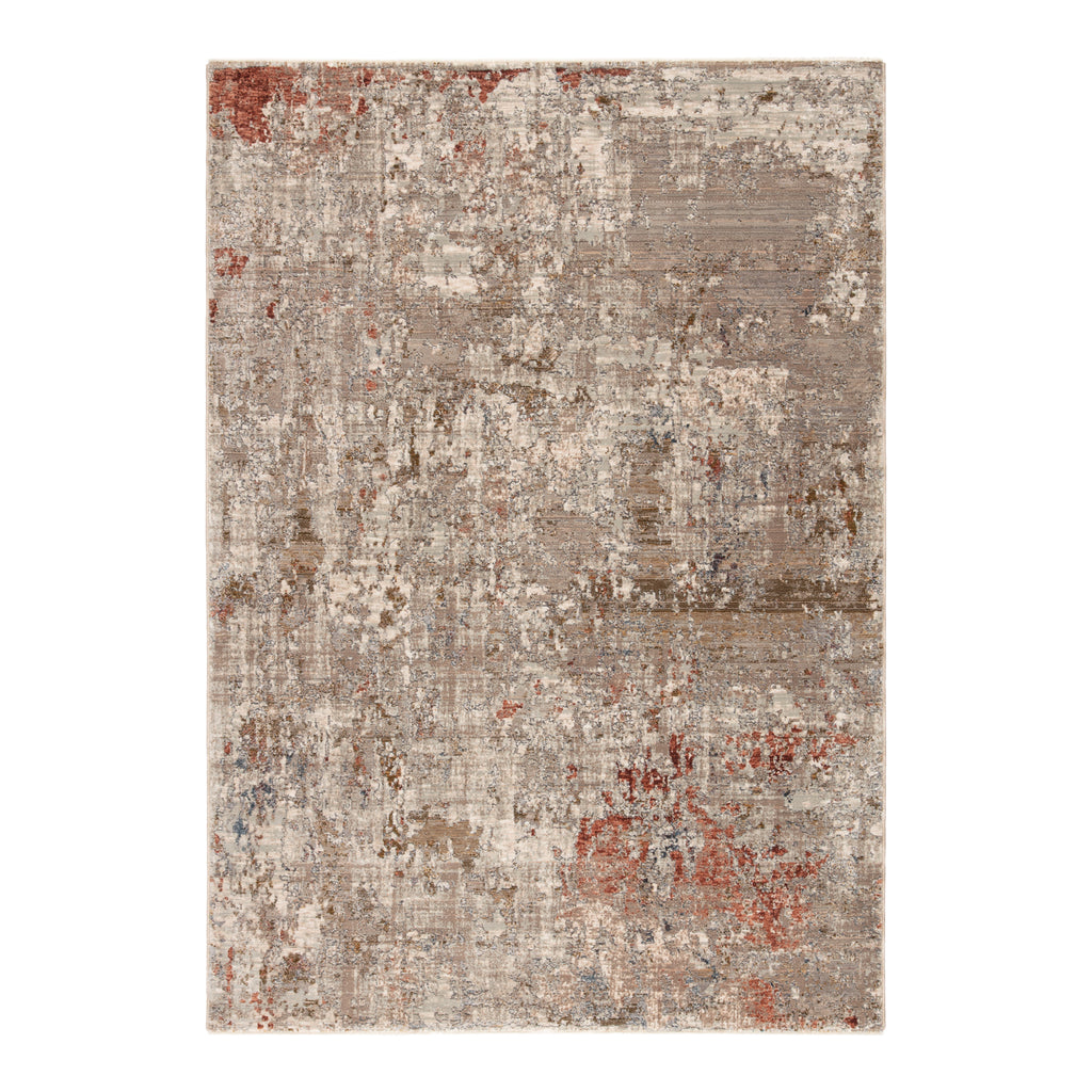 The perfect medley of bold colorways and subtle, classic allure, the Jaipur Valentia collection lends a trace of timelessness to any style space. The Marzena rug features a modern abstract design in tan, cream, and gray with a warm and vibrant hint of red. Crafted of durable polyester and soft viscose for an inviting and luxurious hand, this power-loomed rug boasts texture-rich high-low pile.