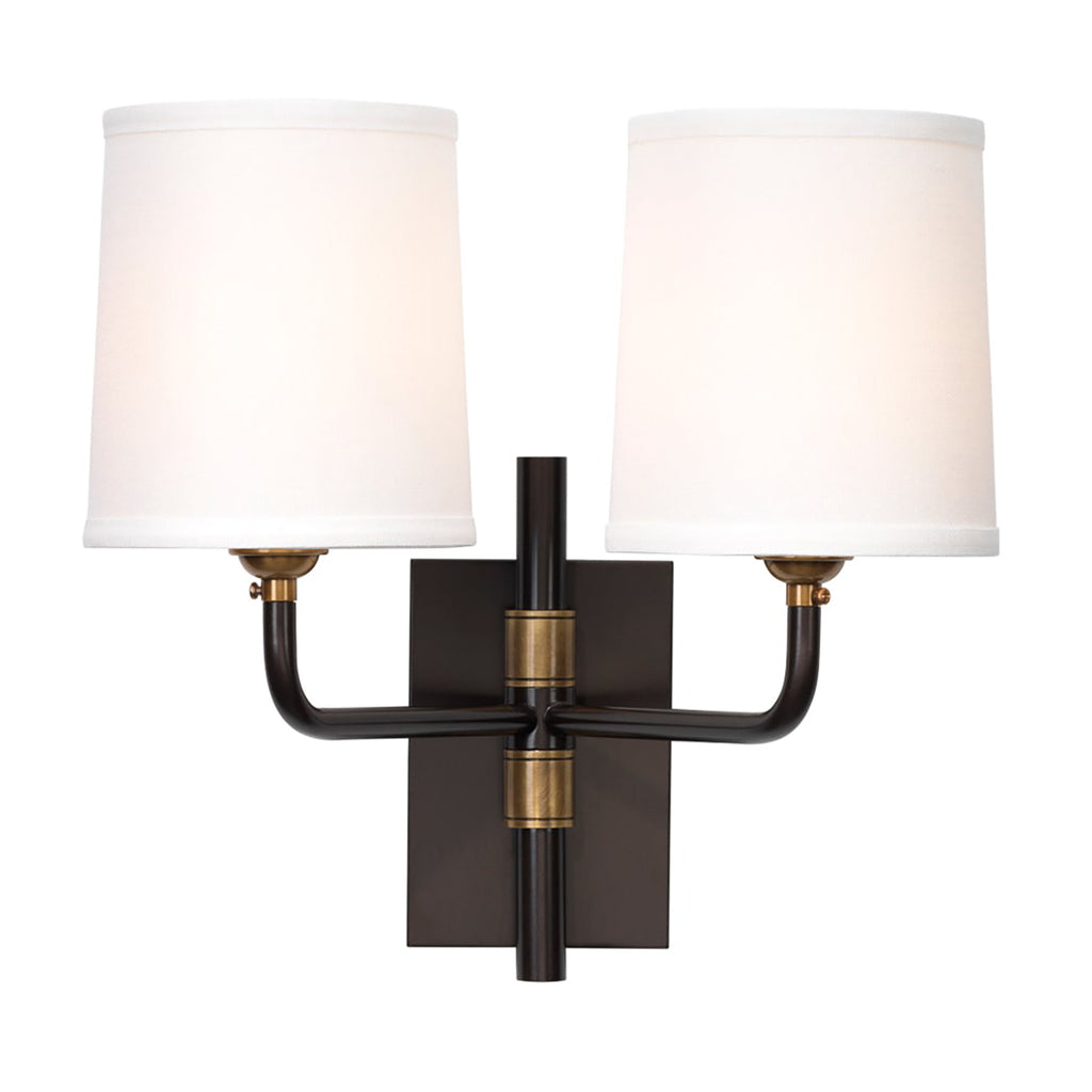Traditional wall sconces are upgraded and elevated in the Lawton collection from Jamie Young. She adds the strength of steel and the softness of linen to lines just a little cleaner, newer, and more sophisticated than offered elsewhere, creating this classic choice for an elevated home. Available in one or two light options, each is beautifully crafted with hardware in an antique brass finish and white tapered shades. Professional installation is recommended.