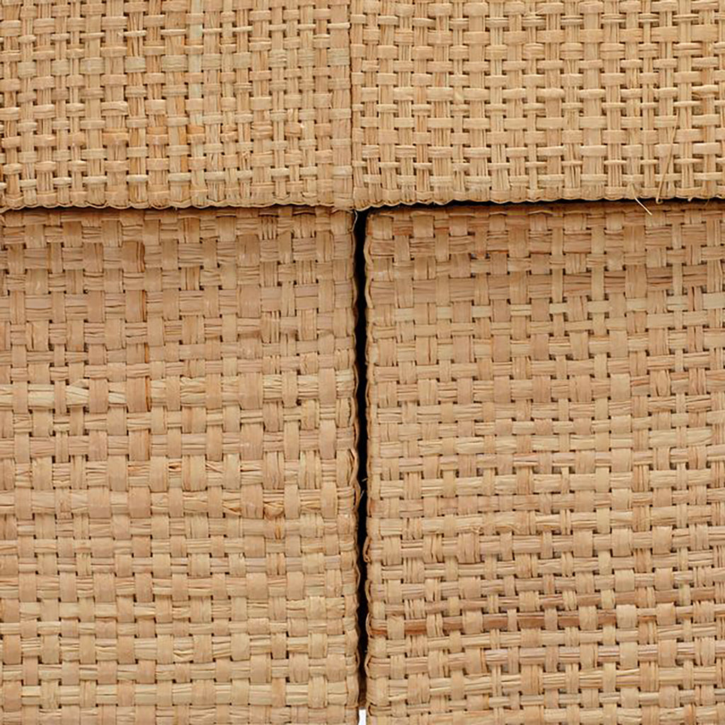 Mid-century meets southern California coastal in this casually sophisticated console. Tightly wrapped in natural raffia, its slim lines conceal two handy drawers for storage.The accent table is perfect for just inside the front door or behind a sofa, and it was designed to be a fit for today’s easy yet elegant homes.
