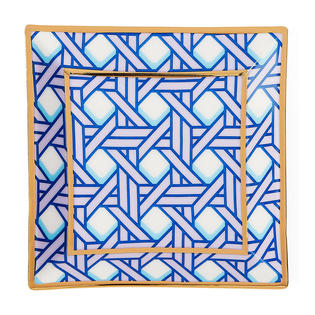 Treat your tablescape to our posh and preppy Basketweave Square Tray, featuring a traditional basket weave pattern in cool blues and lavender with warm gold accents. Crafted from high-fired porcelain. Packaged in a nifty gift box, it makes a perfect hostess present (or pick-me-up for yourself).