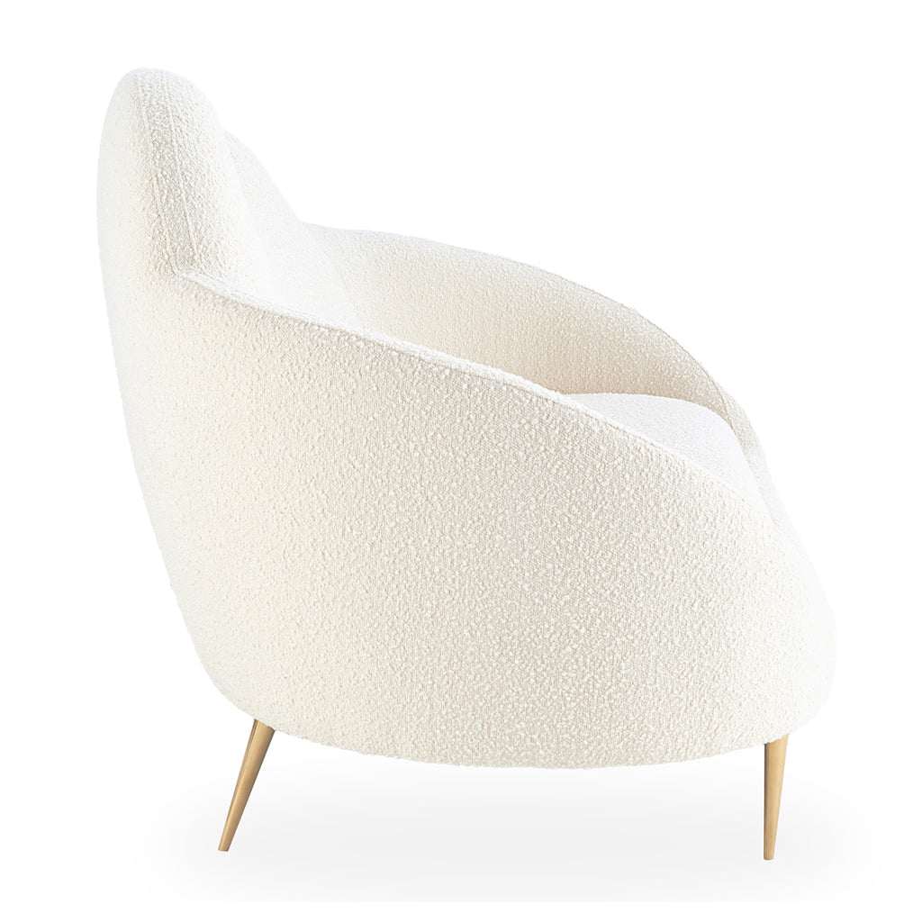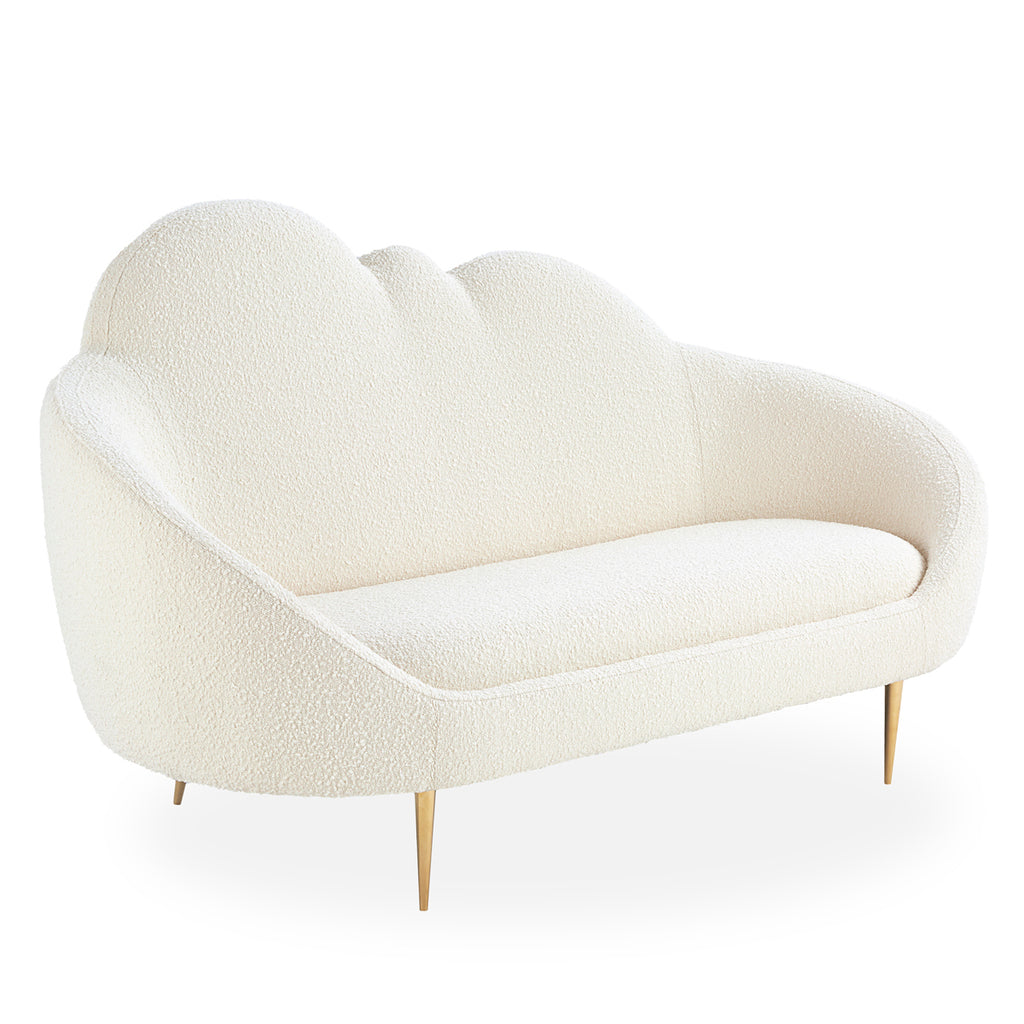Low, loungey, and trés comfortable, the Ether Cloud Settee has a simple genesis story: Jonathan wanted to create a settee that looks and feels like heaven. The chic cloud silhouette and lozenge-like form are enveloping and inviting, while gleaming brass stiletto legs add lift and polish fit for a formal parlor. Whether upholstered in warm oatmeal bouclé or cool sky-toned velvet, it's ethereal, edgy, and oozing elegance.