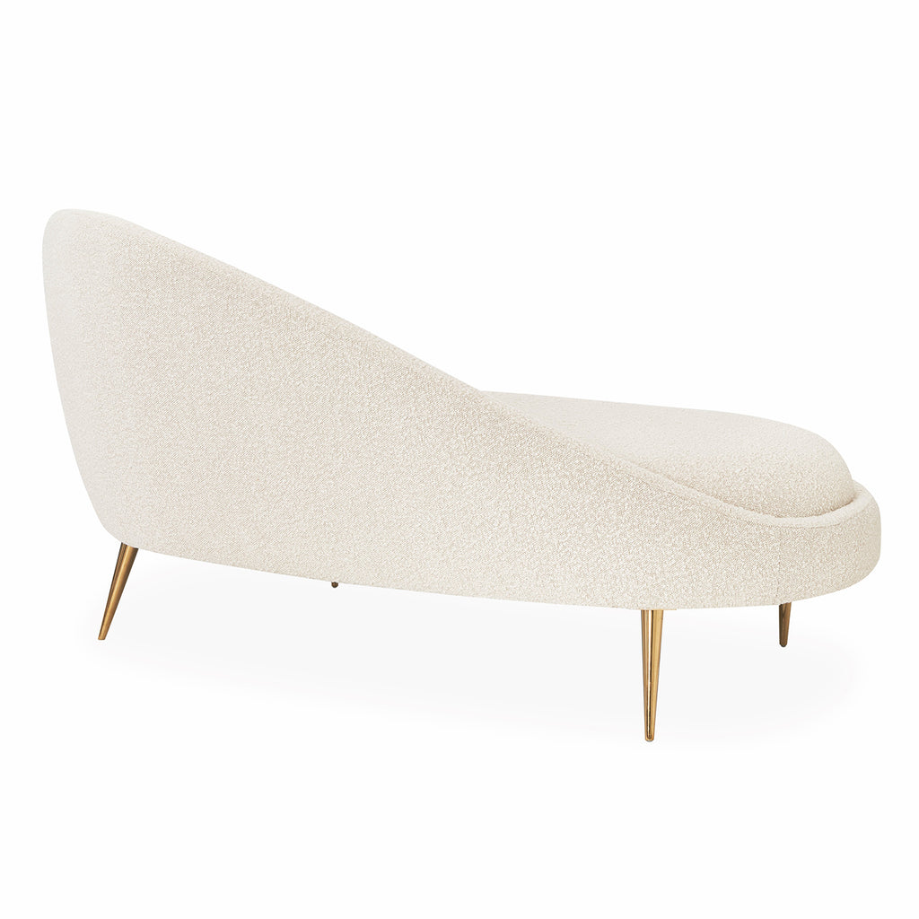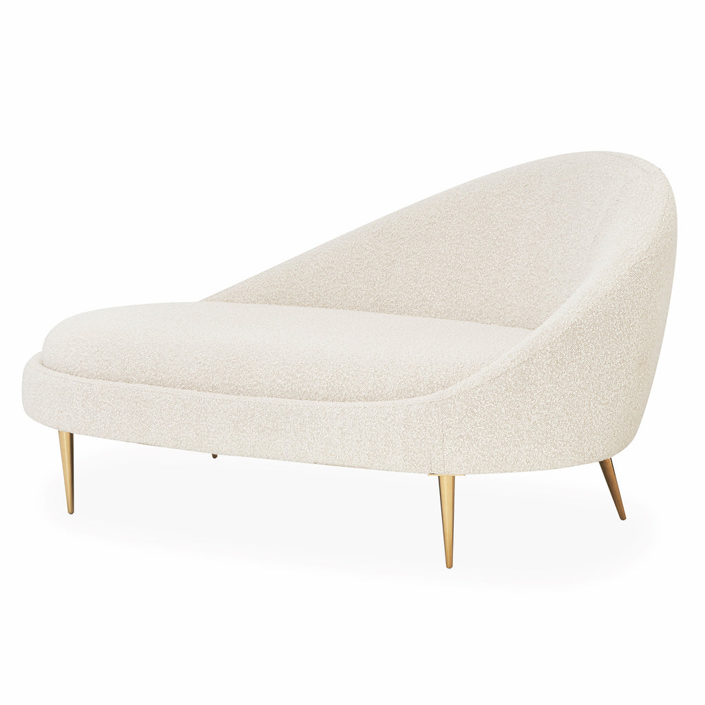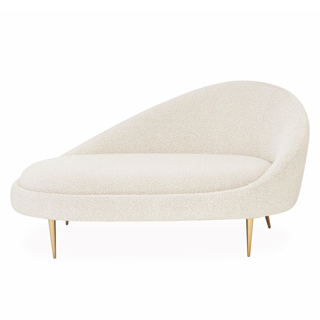 Low, loungey, and incredibly comfortable, our Ether collection has a simple genesis story: Jonathan wanted to create seating that looks and feels like heaven. Our Ether Chaise features a lozenge-like silhouette hugs at one end and slopes at the other, while gleaming brass stiletto legs add lift and polish fit for a formal parlor. Ethereal yet edgy, but also warm and inviting in our favorite nubby neutral--Olympus Oatmeal bouclé. A sculptural touch in your boudoir, or mirror a pair in your living room for serene symmetry. Available as a left- or right-arm chaise.