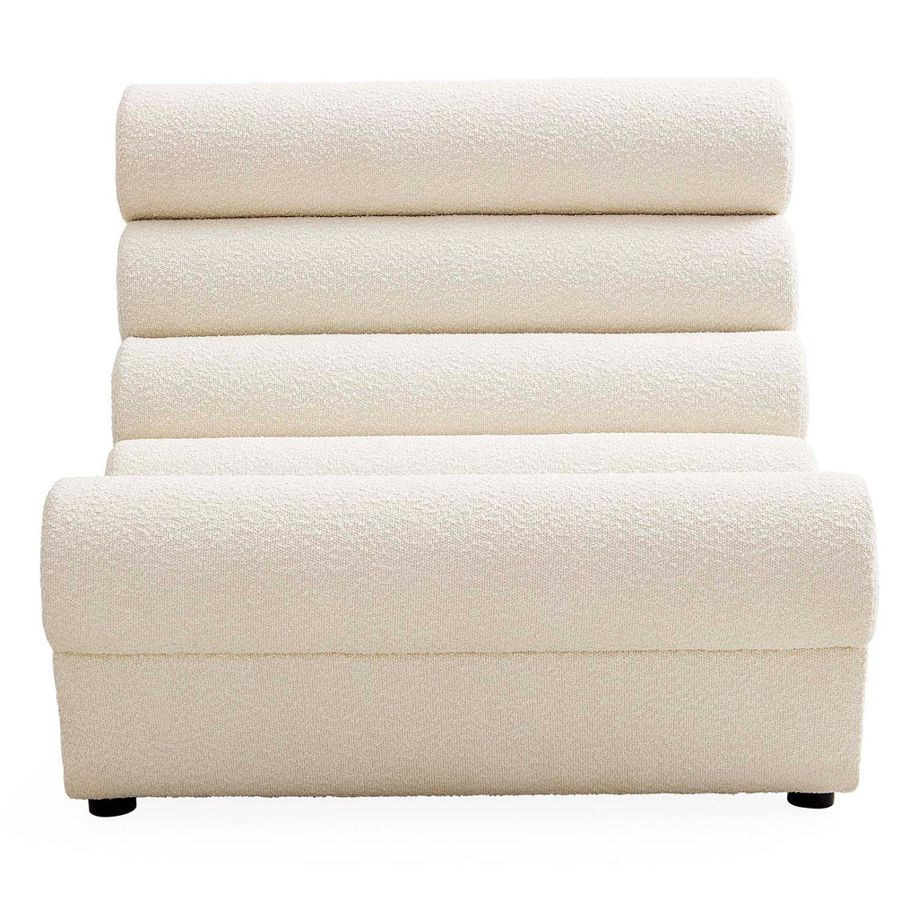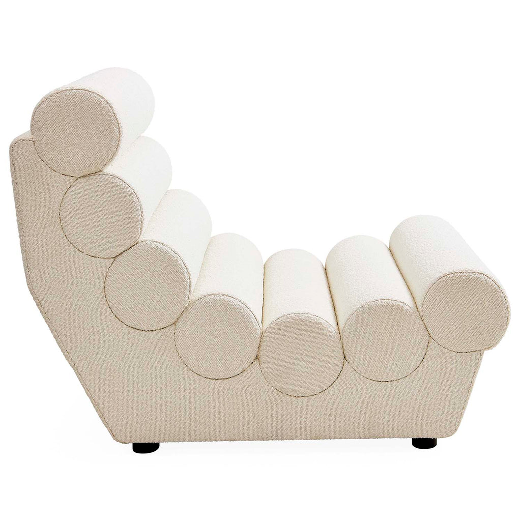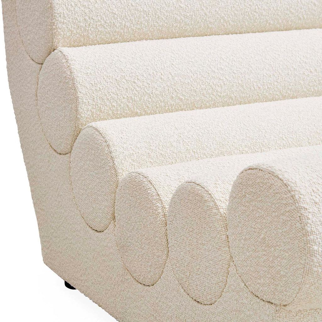 Introducing our Futura seating system. Each piece features a French 50s inspired stacked tube design—deeply channeled, ultra-futuristic, and très loungey. Firm cushions and a cradling swoop create a deep curvature that’s perfect for sinking into. Wrapped in a family-friendly white: our Vapor Ivory bouclé is contract-grade and easy to clean. Available in three and five piece configurations ready to float it in a palatial pad, or build your own with three separately sold modular pieces.Our Slipper Chair is for use as a single oversized seat or as an added-in extension cushion. Join multiples and combine with the Slipper Sofa to form modern bench-style sofas of any length.How our Futura seating system works: Corner Sofa + Slipper Chair + Slipper Sofa = Endless Possibilities. Join armless pieces to form modern bench-style sofas of any length. Or combine with the Corner Sofa to create give your sectional shape. Reshape as desired, or ad