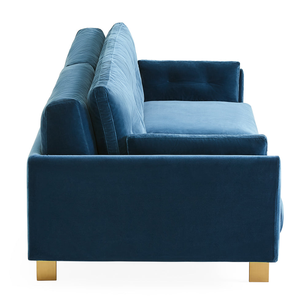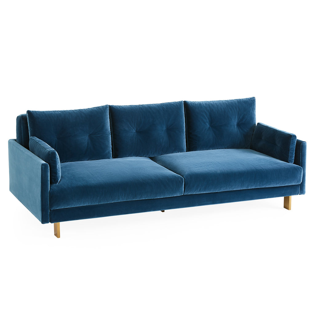 Deep and squishy, family-friendly, and très chic—you can have it all. In Varese Petrol velvet with minimal brushed brass legs. Combine details like inviting pin-tucked back and side cushions, with (surprise!) removable, dry-cleanable slipcovers and everyone can go mad. Formal, yet informal, our Malibu Sofa has the right charisma for a Brooklyn brownstone or Park Avenue penthouse.