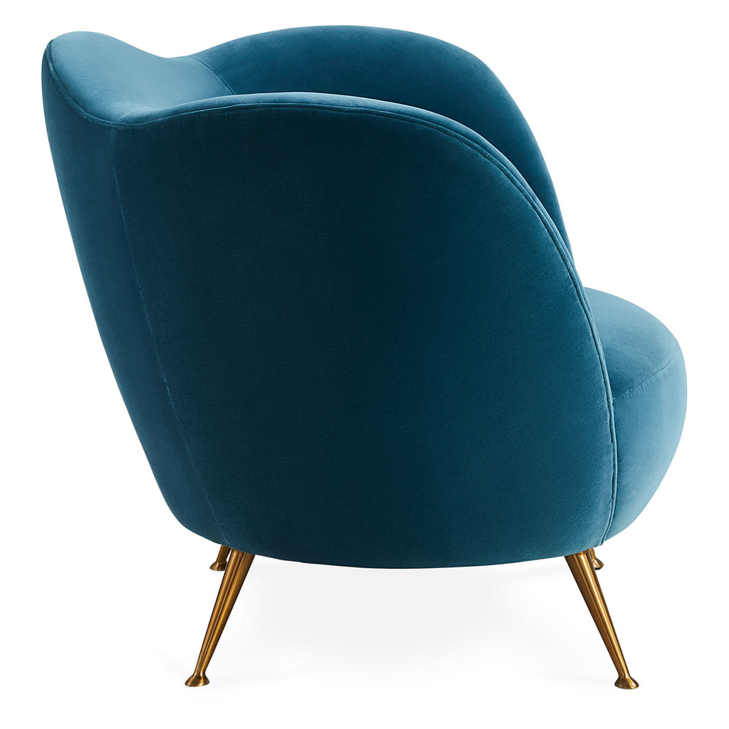 An ultra-comfy cocoon, the Jonathan Adler Ripple Lounge Chair's enveloping back curve holds you in a hug, and its wave topped back doubles as an intuitive armrest when you turn to talk. There's no better chair to pair anywhere from your living room to the boudoir. Ready to ship in a supersoft jewel toned velvet that works as a moody neutral. Simple, luxe, undulating. Our signature Ripple edge covers every corner of the room in a wash of minimal modernism and va-va-voom curves.