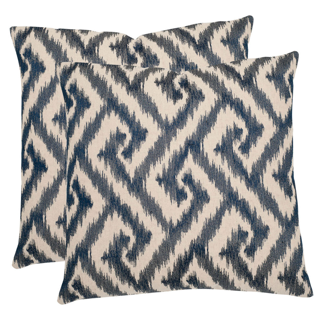 Evocative of Chippendale fretwork, the classic motif is artfully embroidered on the cotton/linen blend cover of this sophisticated accent pillow. The blue embroidery and design will complement furnishings in a formal living room or sunny solarium. Sold as set of two.