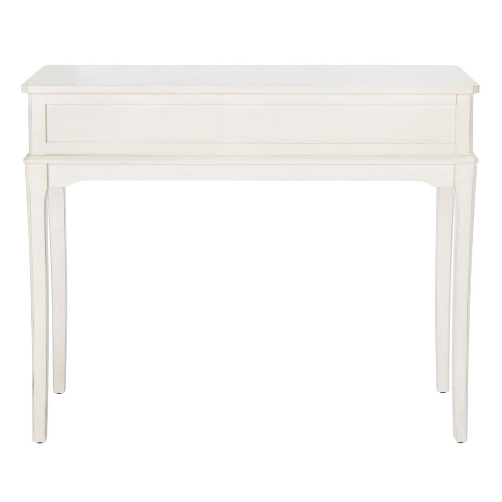 This 2 drawer console table brings a delicate touch of French country charm to any hall or entryway. Opal’s subtly scalloped apron details and hints of cabriole styling emanate classic elegance, while its distressed white, black or brown finish updates the look with modern farmhouse chic.