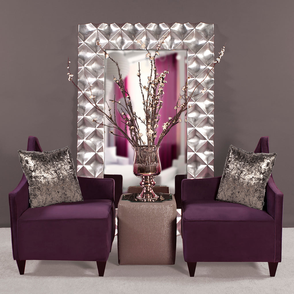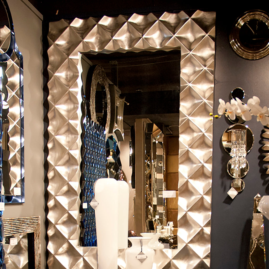 The Krystal Mirror is a piece of dramatic beauty. Its huge stature makes it perfect as a floor mirror, however it does come affixed with D rings so it can be hung on the wall. The large rectangular frame features an exaggerated honeycomb texture. It is then finished in a bright silver leaf. Instantly make any room larger simply by adding this mirror to it. This stunning piece would be a great addition to any room.