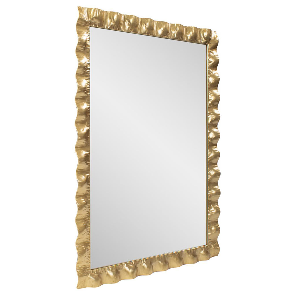This mirror features textured frames that mimic the undulating patterns of waves, adding a touch of fluidity and movement to your decor. This metal vanity mirror provides a versatile complement for all lifestyles. What sets this mirror apart is the intricate texture detail in its framework, creating definition and visual intrigue. This mirror invites you to explore the interplay of light, shadow, and texture, transforming your living space into an immersive gallery of modern design and artistic expression.