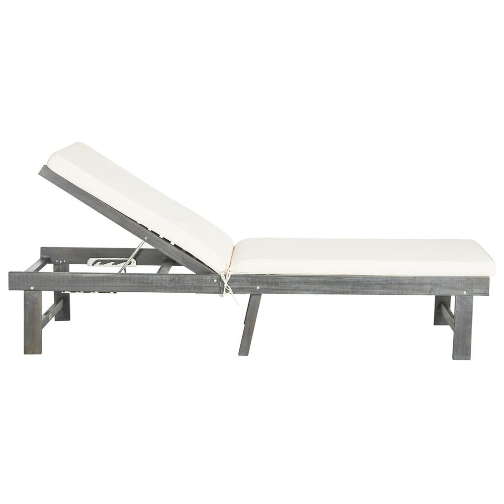 The simple silhouette of the Larkholme chaise lounge chair complements decks and patios in traditional and contemporary homes.  Exquisitely comfortable, this adjustable lounger is crafted of sustainable acacia wood in natural or grey with beige all-weather cushion.
