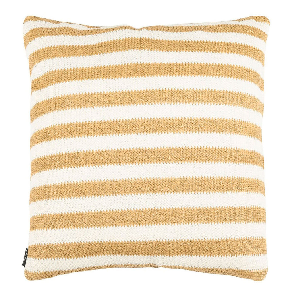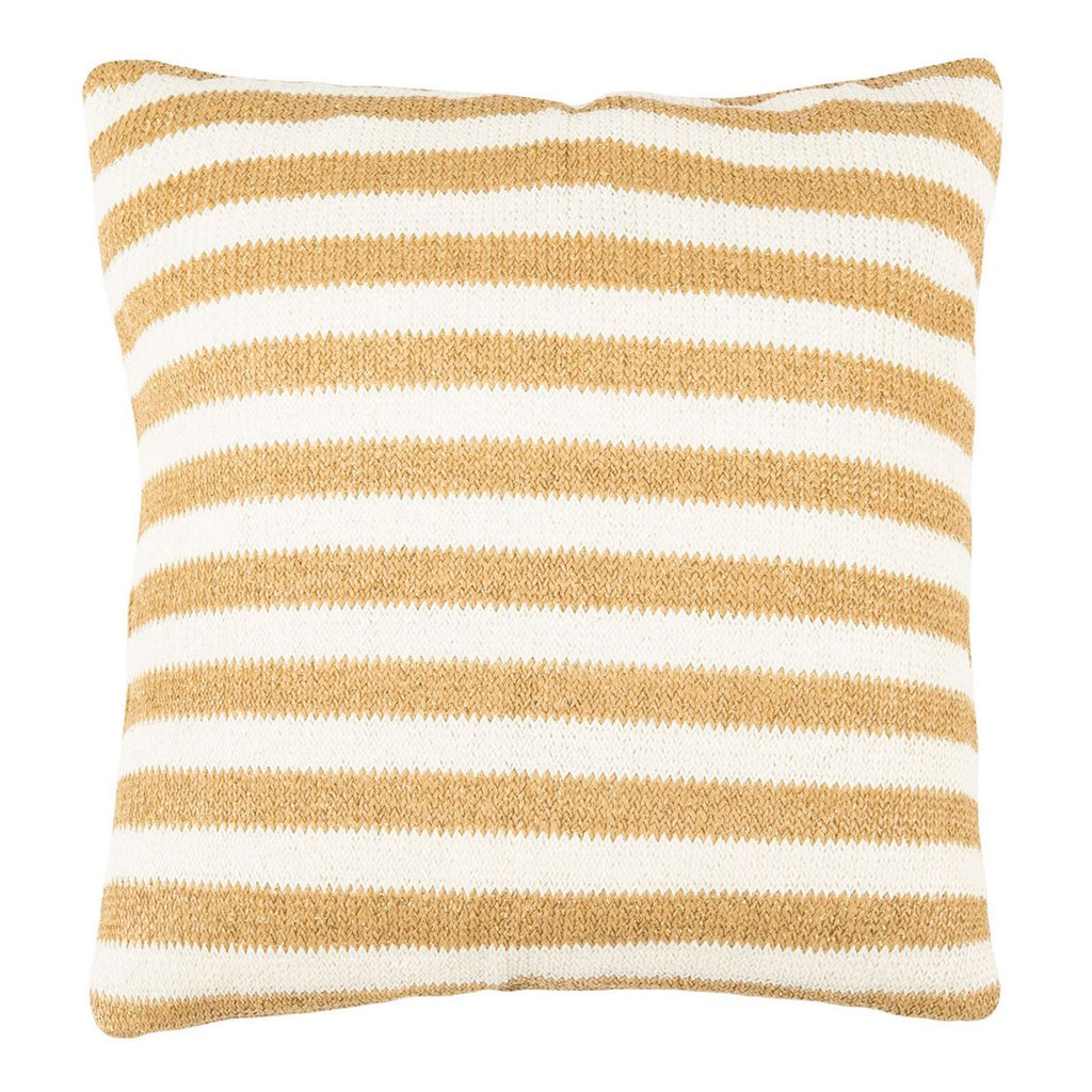 Classic farmhouse charm abounds from this light and airy throw pillow. Stripes of cream and gold evocative of a peaceful prairie lend a breezy vibe, elevating room decor with timeless Americana style. A handy zipper on back makes for easy-access care and cleaning.