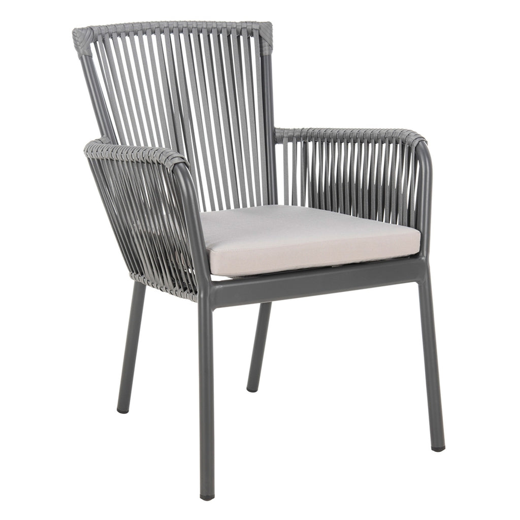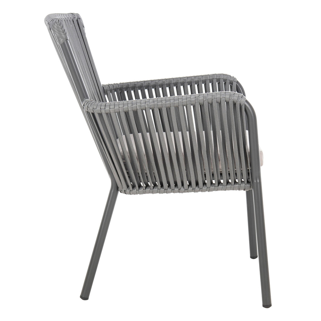 Bring monochromatic magic to your outdoor living space with this set of stackable rope chairs. Its stylish Grey nylon rope back and Grey wicker frame adds a contemporary spin to your décor. Sold as set of two.
