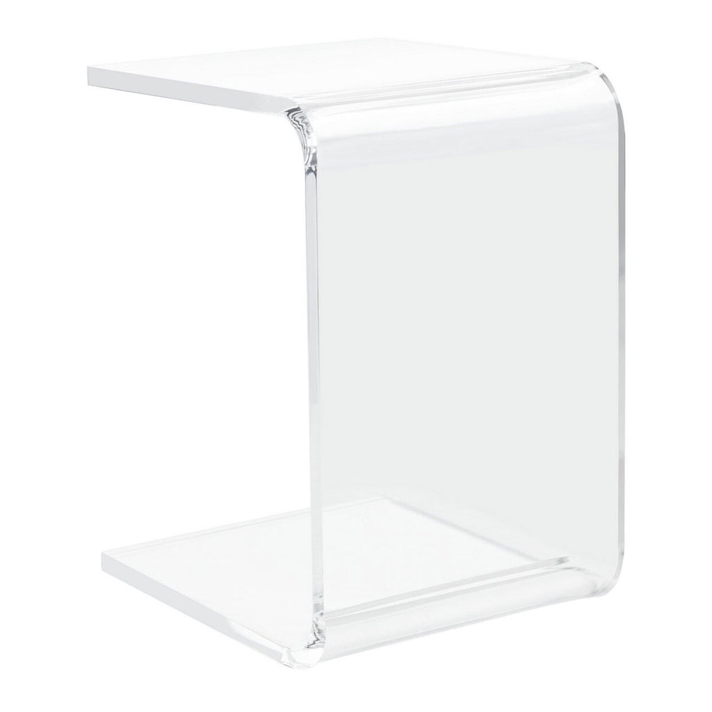 Elegantly minimalist, this acrylic side table embraces the tried and true lesson of “less is more”. The C-silhouette in crystal clear acrylic emanates a rich sense of depth in any décor and visually opens a living space with its airy ambiance.