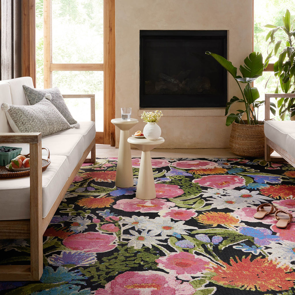 Romantic and maximalist, the Loloi Botanical Collection goes all-in on large-scale flowers with a poppy, vintage fabric style. These power-loomed area rugs are made of mixed materials in Egypt for both indoor and outdoor use, where all they need is a rinse with a hose to clean when needed.