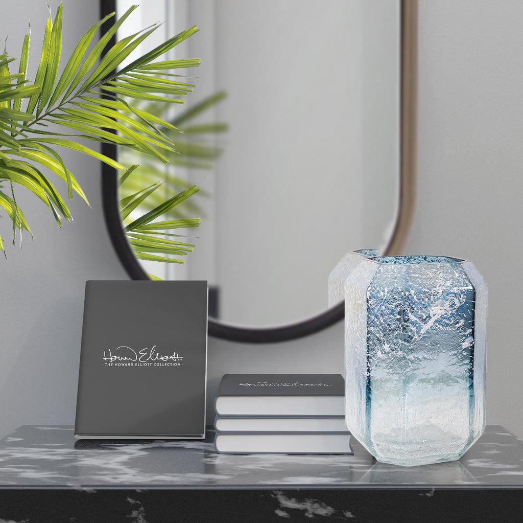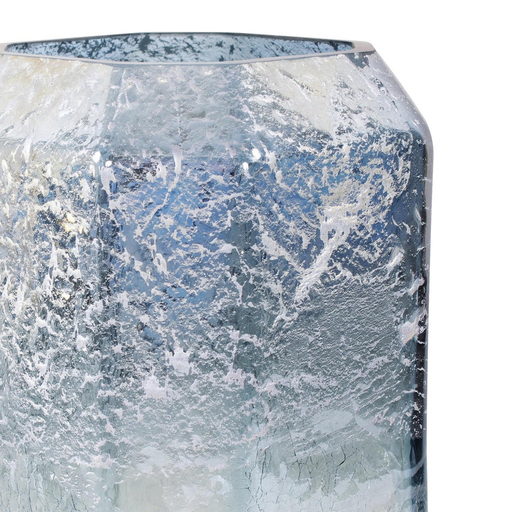 This vase is a versatile addition to your decor, allowing you to create dynamic displays tailored to your space. The striking arctic blue coloring evokes a sense of icy tranquility, while the geometric accents add a touch of contemporary chic. This vase, with its clean lines and cool tones, bring a sense of order and balance to any room.