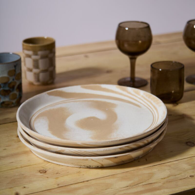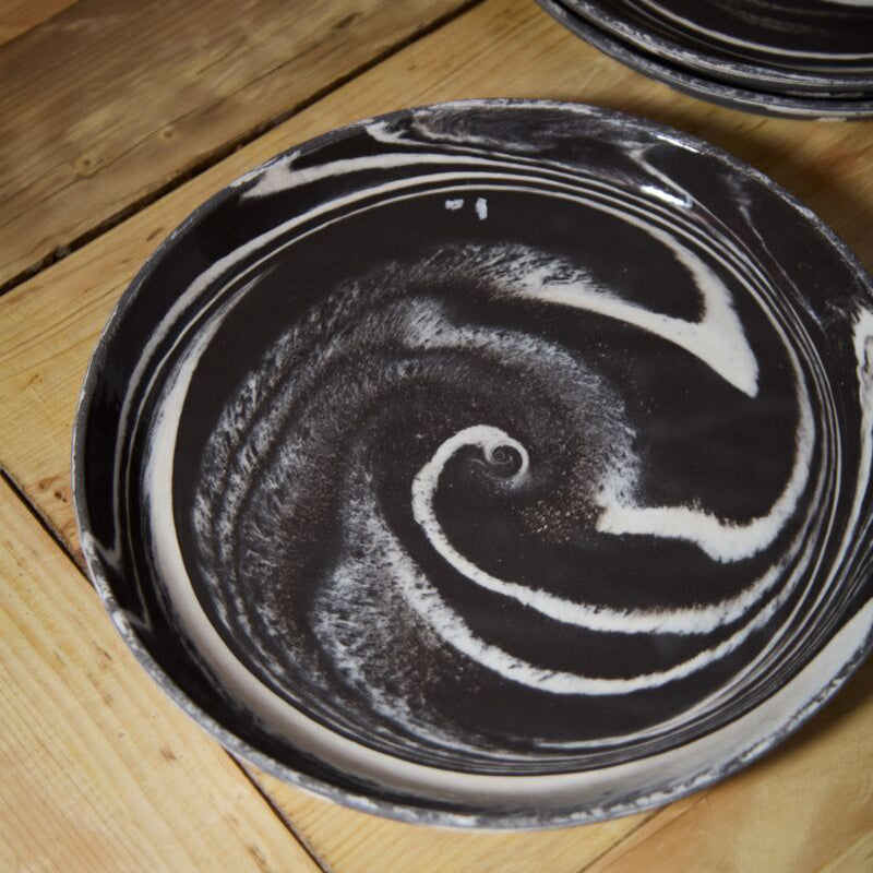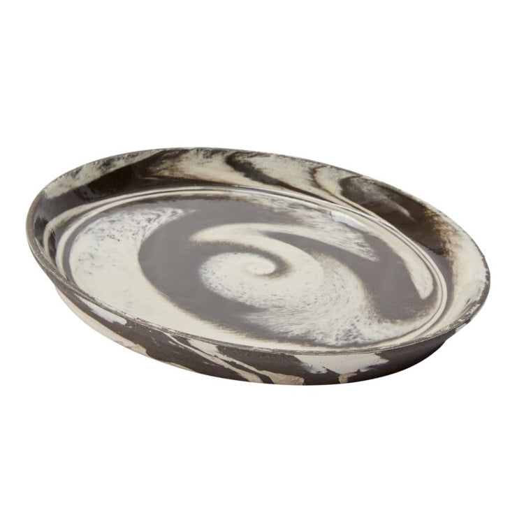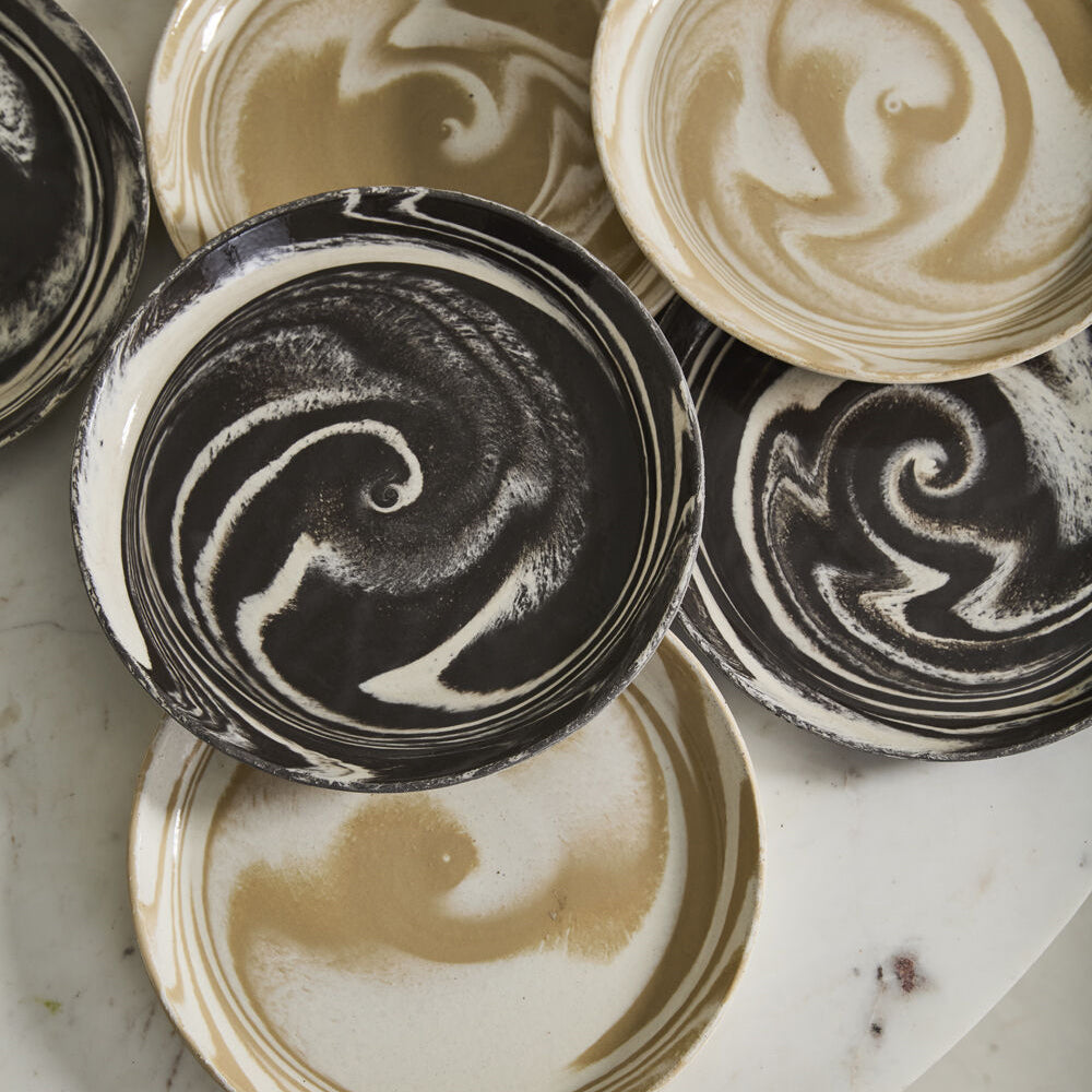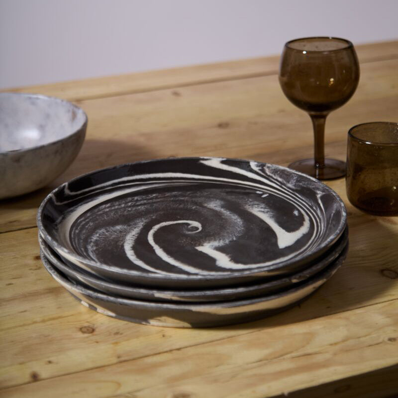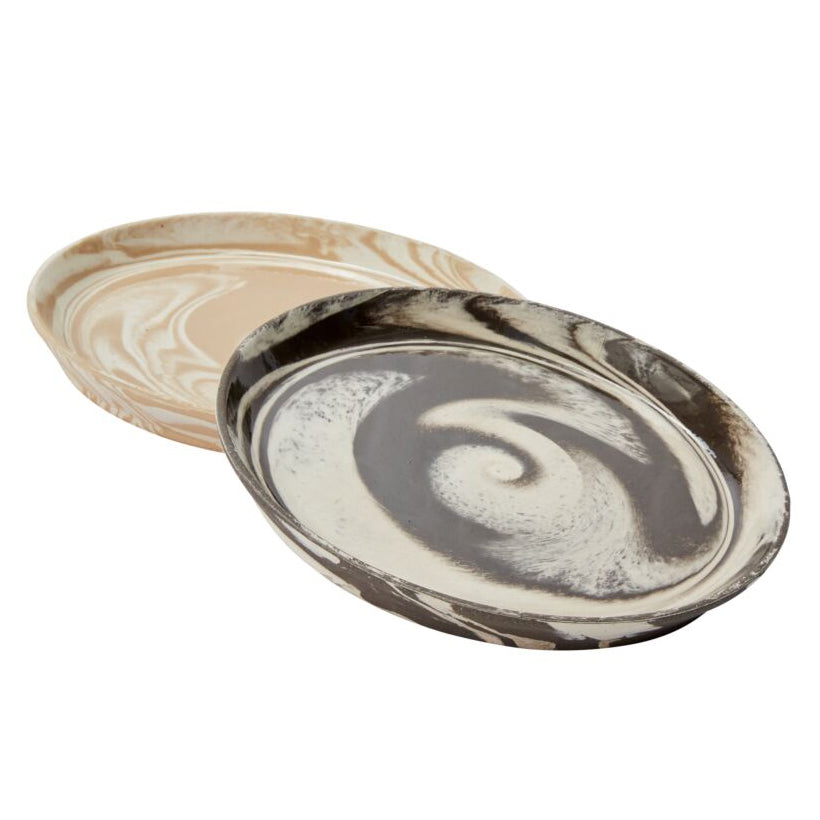 Like handcrafted, high quality art pieces, the stoneware Marbled Charger Collection is a striking focal point for dining spaces. These naturally marbled clay food-safe pieces can be used under a place setting or as a tray for displaying decorative objects or serving food. Variation will occur between pieces due to the unique design.