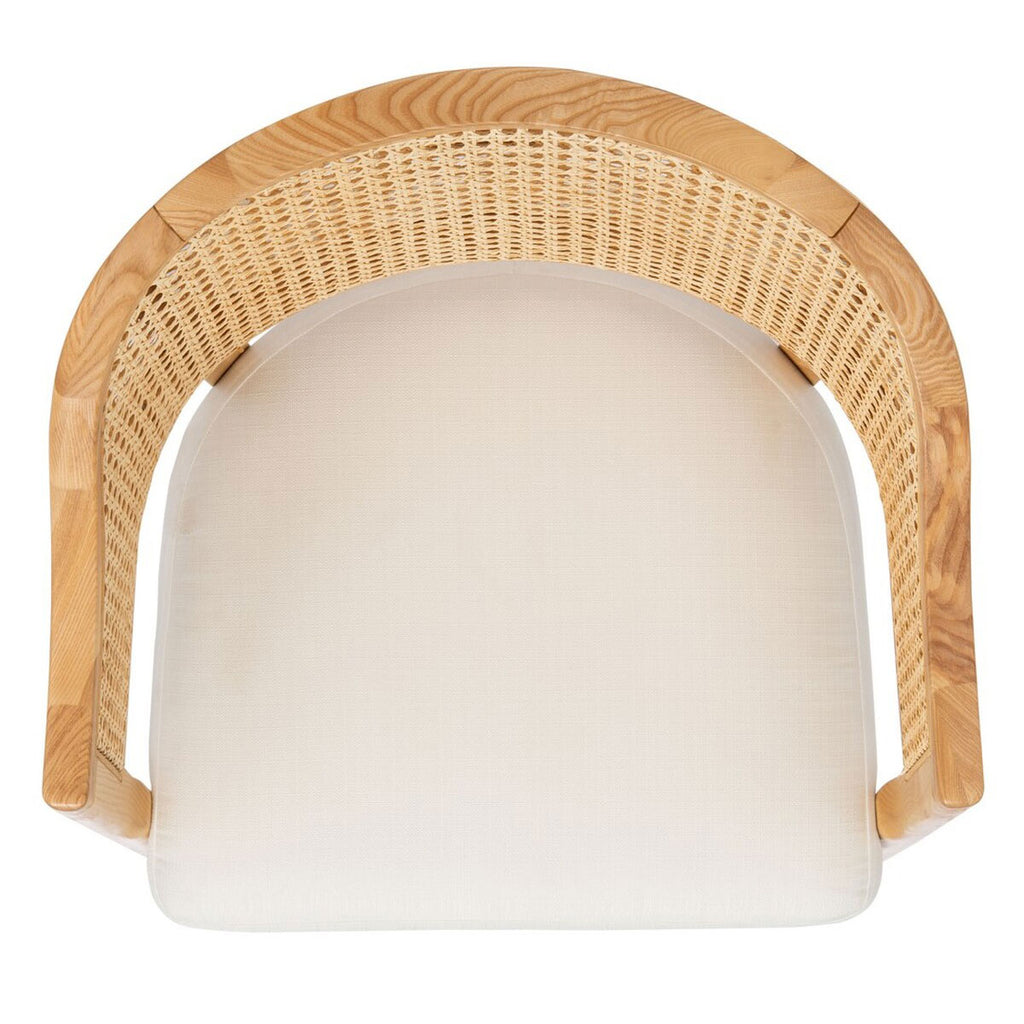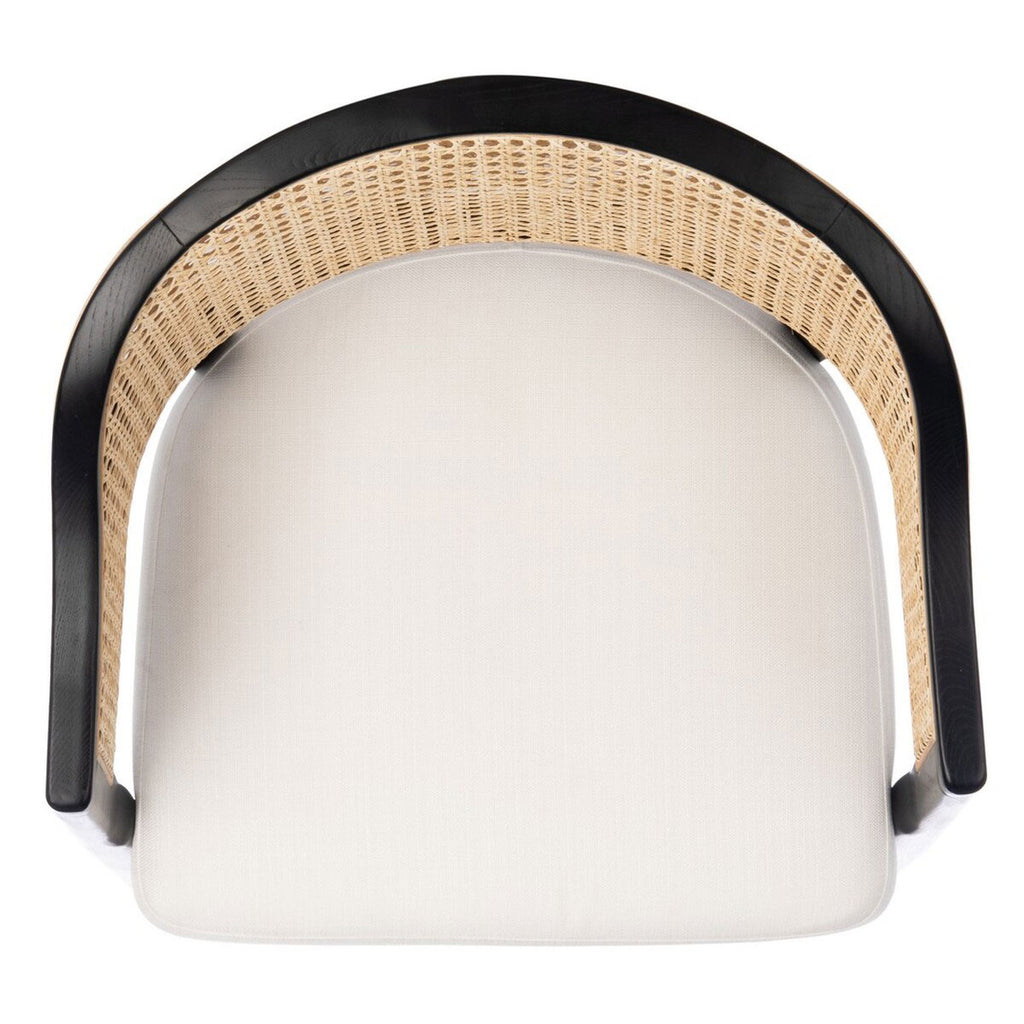 The rattan dining chair reimagines a Mid Century design icon for today’s contemporary chic interiors. The curved rattan back, black stiletto inspired wood frame, and glamorous brass caps make it a bold, stylish statement piece in any modern dining room.