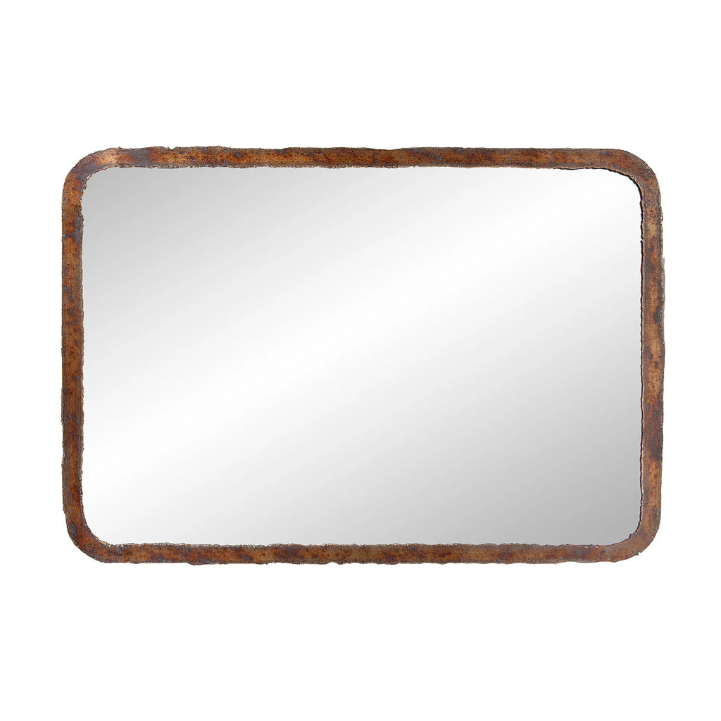 Artisans work with a wide range of materials. Metals, being one such material, has become a much sought after component to everything from accent furniture to wall decor. The rough abstract nature of the Marius collection allows the mirror to become more than just a mirror, but a work of art. The rectangular metal frame features an acid washed finish with a torn edge effect. D-rings are affixed to the back of the mirror so it is ready to hang right out of the box in either a horizontal or vertical orientation!