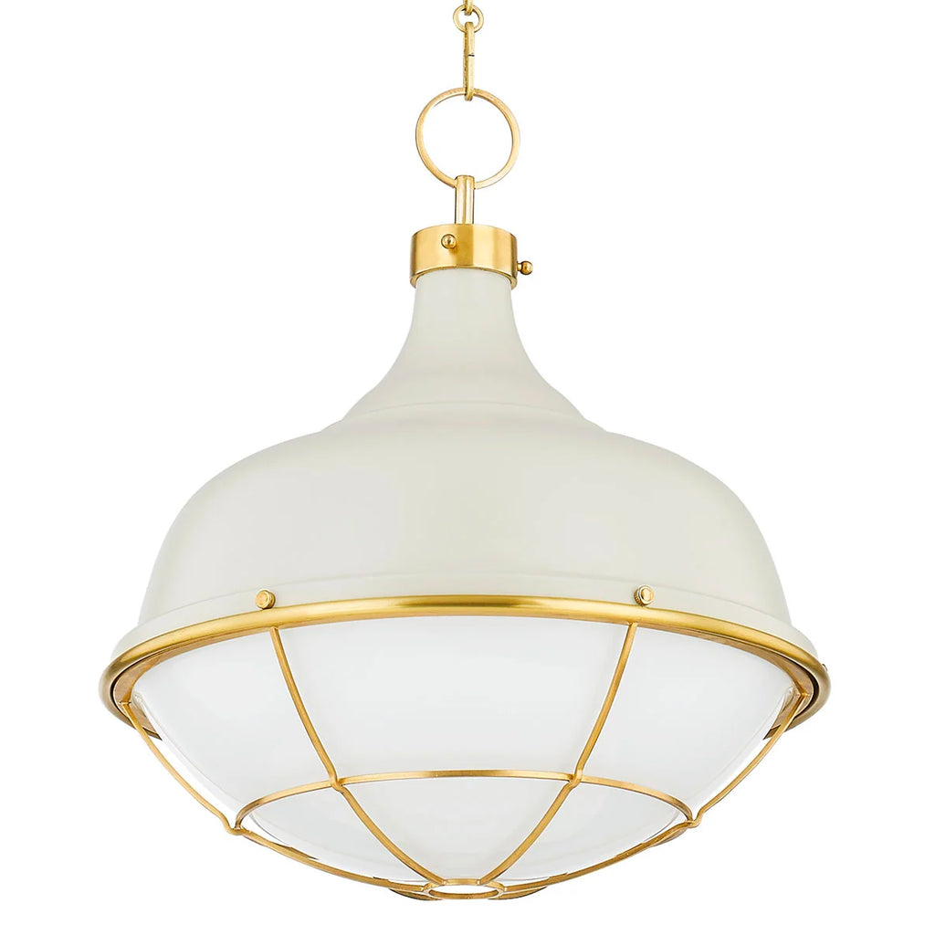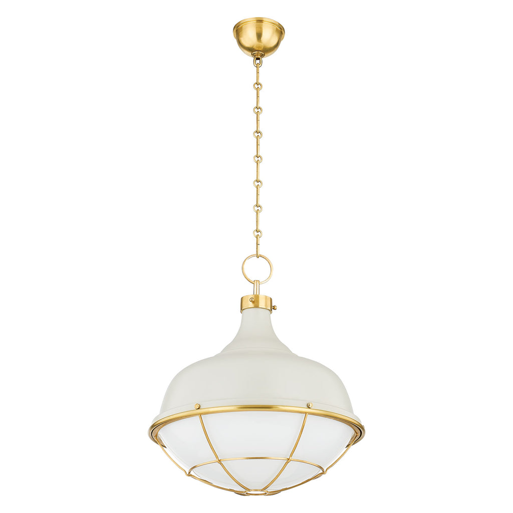 Renowned for built-to-last quality with a timeless feel, Hudson Valley offers a modern lighting collection with elegant touches, recalling vintage inspiration. Shed a little light on your space with modern pendants by Hudson Valley Lighting, which suspend from the ceiling of your dining room or kitchen island, functioning as both practical and elegant. Gorgeous Aged Brass cagework and glossy opal glass give this recognizable silhouette an instant upgrade. The refined hardware and Off-White, Distressed Bronze, and Darkest Blue finish options add to Holkham's elevated nautical aesthetic. Part of the Hudson Valley Mark D. Sikes collection.