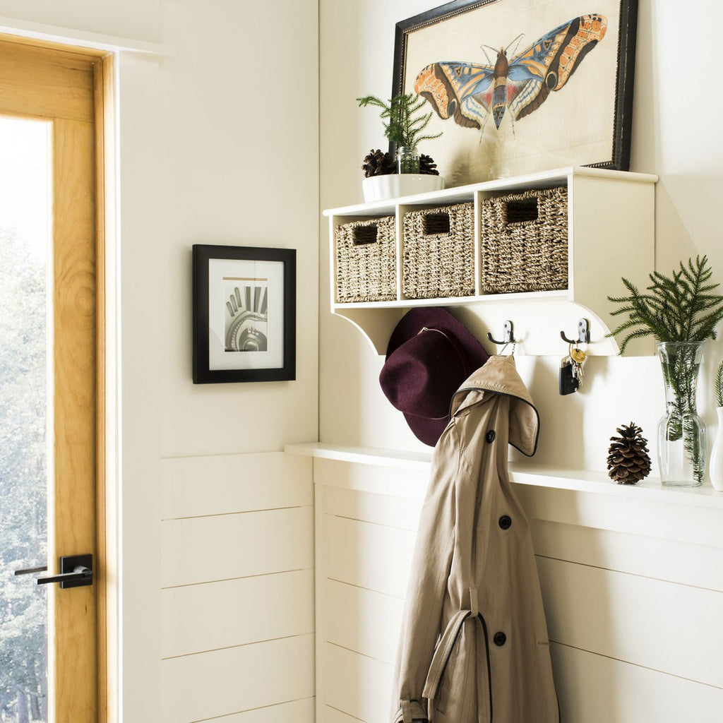 Add instant storage without sacrificing floor space with this hanging 3-basket wall rack. The perfect storage companion, its removable baskets and double hooks offer generous space and blend into any décor. Ideal for any kitchen, bath or entryway.