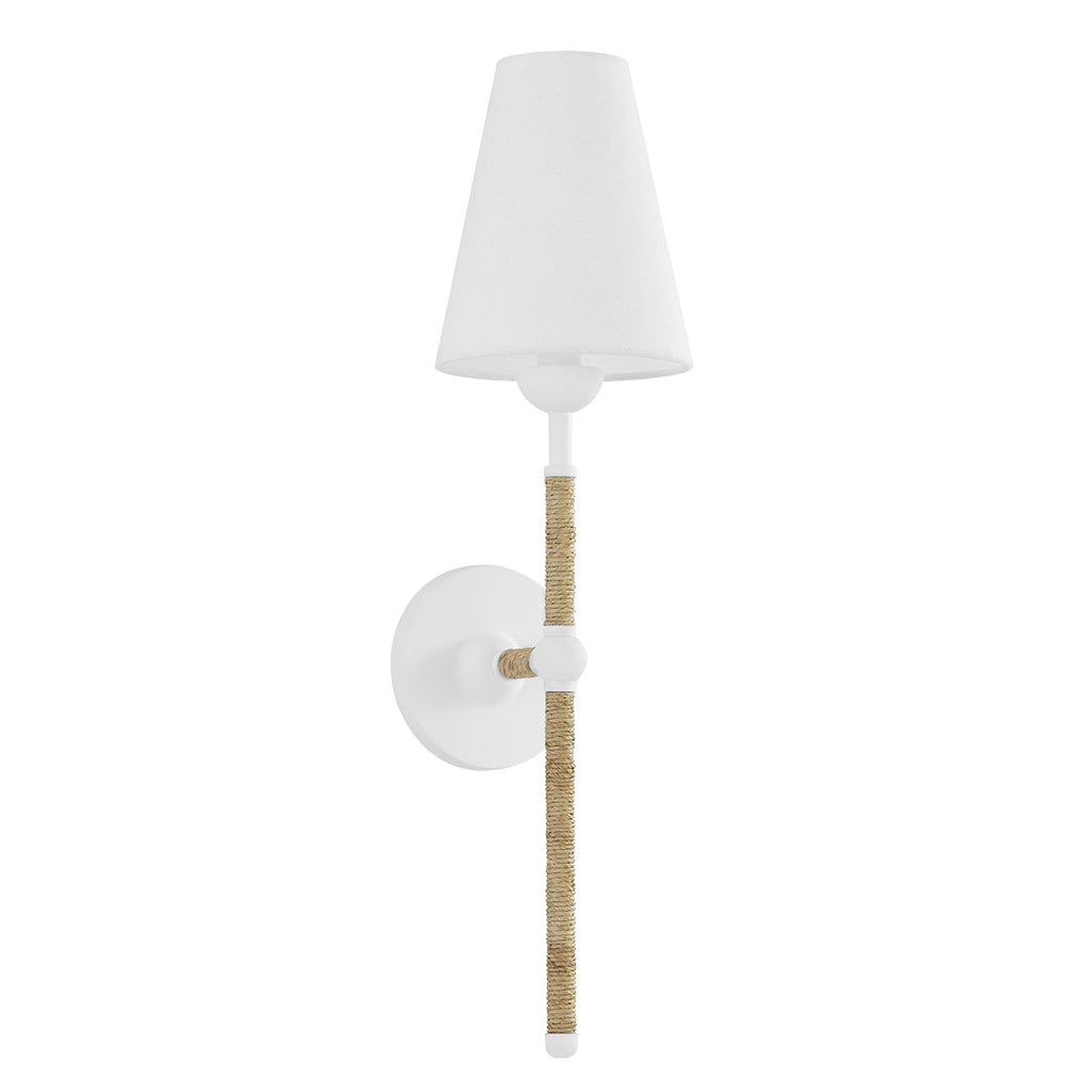 High-quality and exceedingly creative, Mitzi delivers a semi-nostalgic classic lighting collection with streamlined contemporary elements that instantly upgrade your space. The definition of modern coastal style, the Mitzi Mariana wall sconce features a raffia-wrapped textured white frame and crisp white linen shades for an elegant aesthetic that is dressed to impress. Available in a large and small chandelier, wall sconce, and floor lamp, this collection adds a touch of casual elegance to any space. Part of the Megan Molten x Mitzi Tastemakers collection.