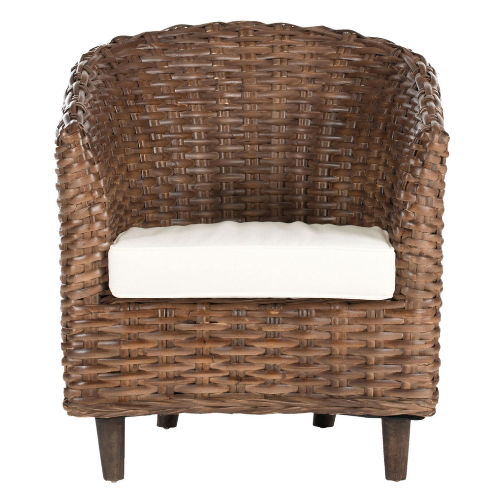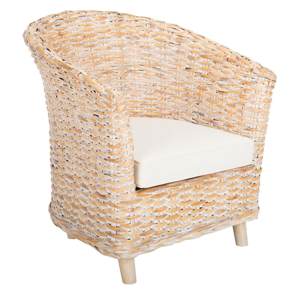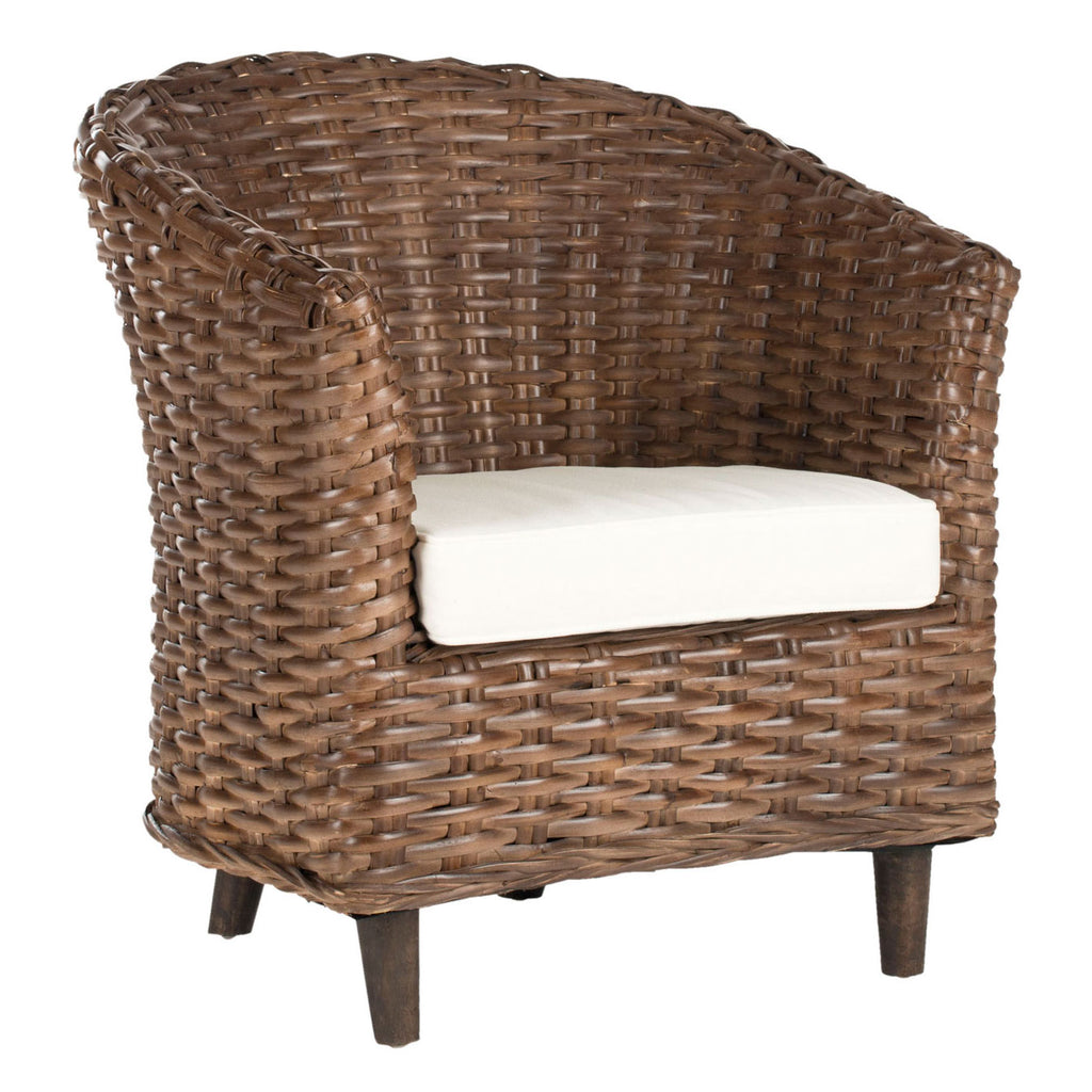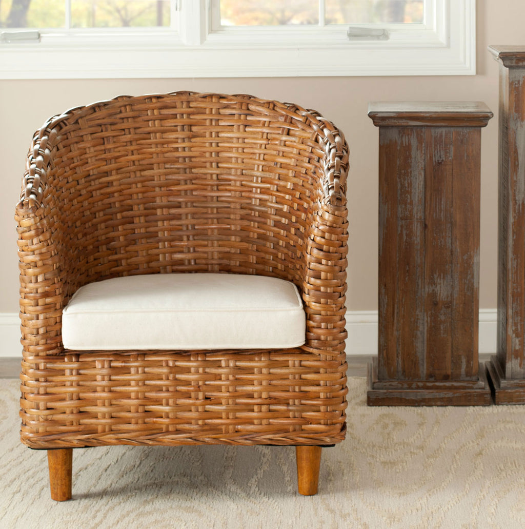 It’s a wrap. Surround yourself with the comfort and transitional style of the woven rattan barrel chair. Crafted with mango wood and rattan with upholstered cotton seat cushion, it’s the perfect place to dream the day away with a good book.