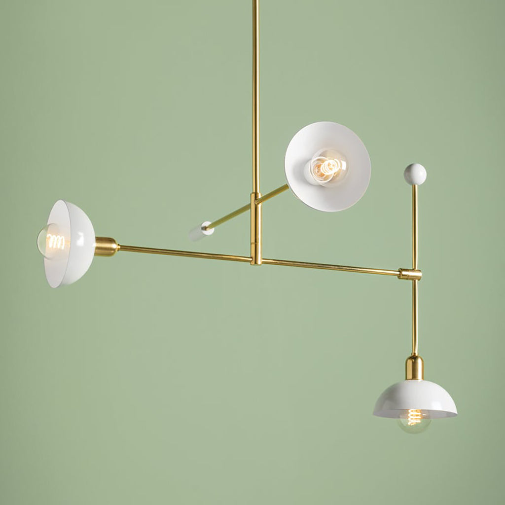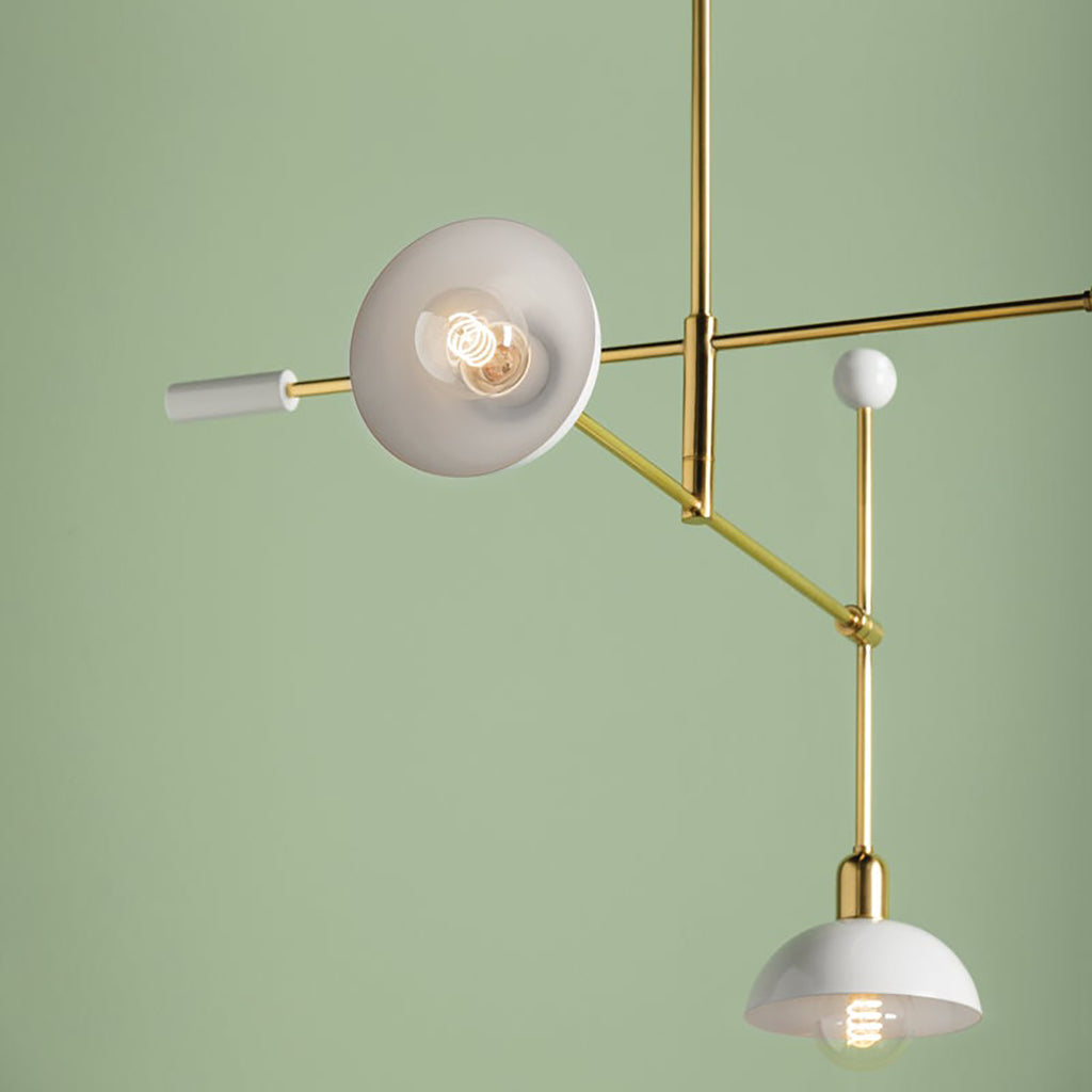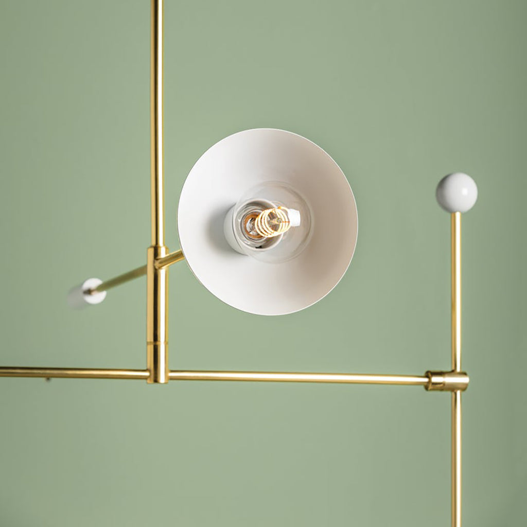 Rooted in mid-century modern design, the mobile-inspired Mitzi Billie chandelier is easy on the eyes. Pivoting arms with matching shades in Soft White emit light in all directions, reflecting off the warm Aged Brass finish. Clean lines, symmetry, and implied movement combine to create an artful statement.