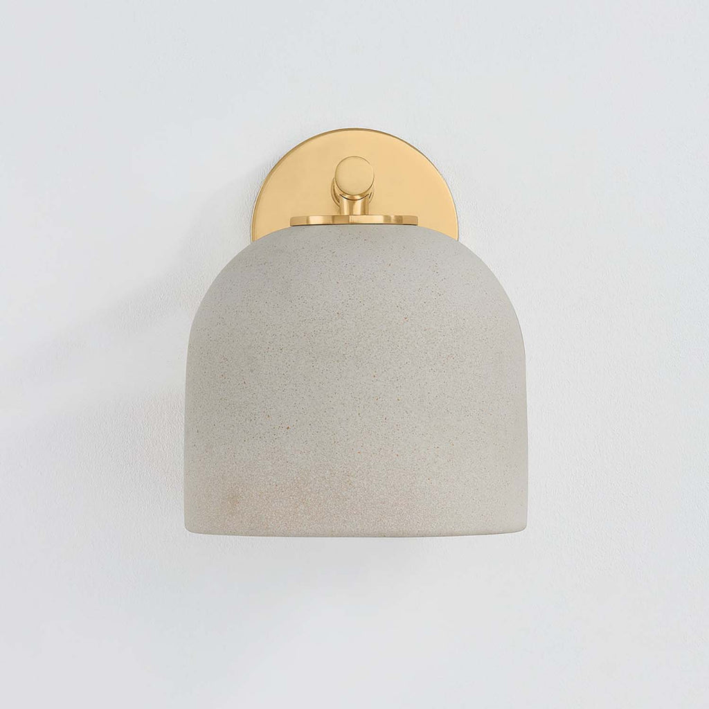 Inspired by Neoclassical architecture, Mitzi Cara uses a domed shade and textural ceramic finish for a sconce that feels both ancient and new. A matte reactive glaze in an creamy hue creates a subtle surface grain that imitates natural stone. A circular modern armback in an Aged Brass finish adds shine to the fixture.