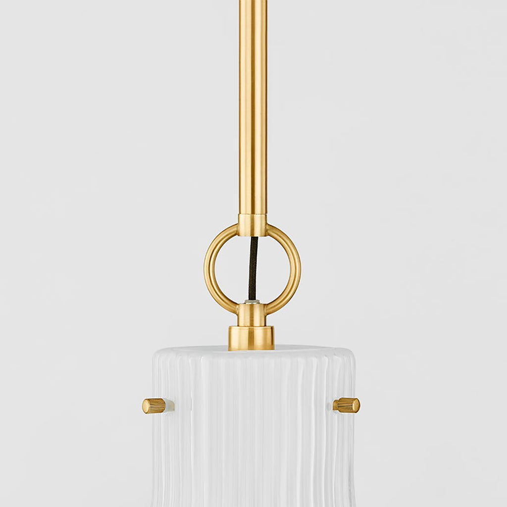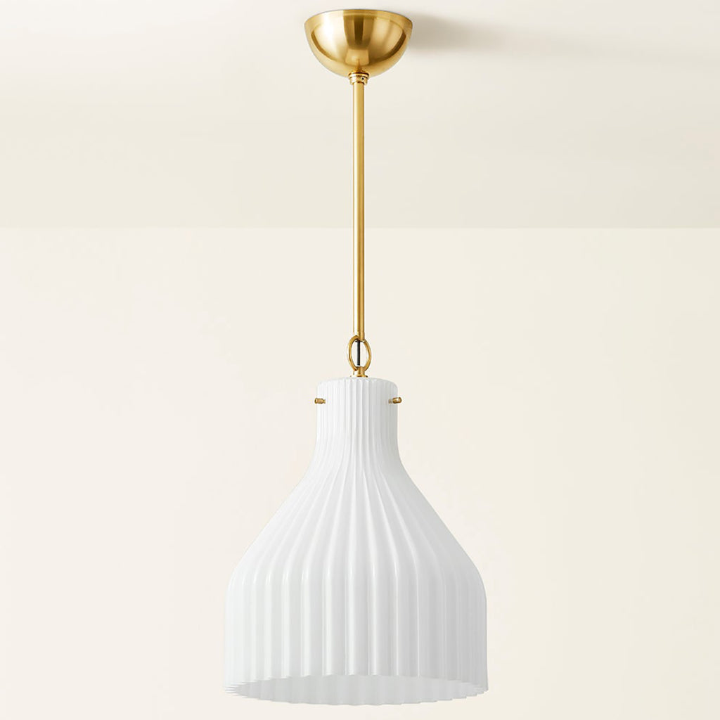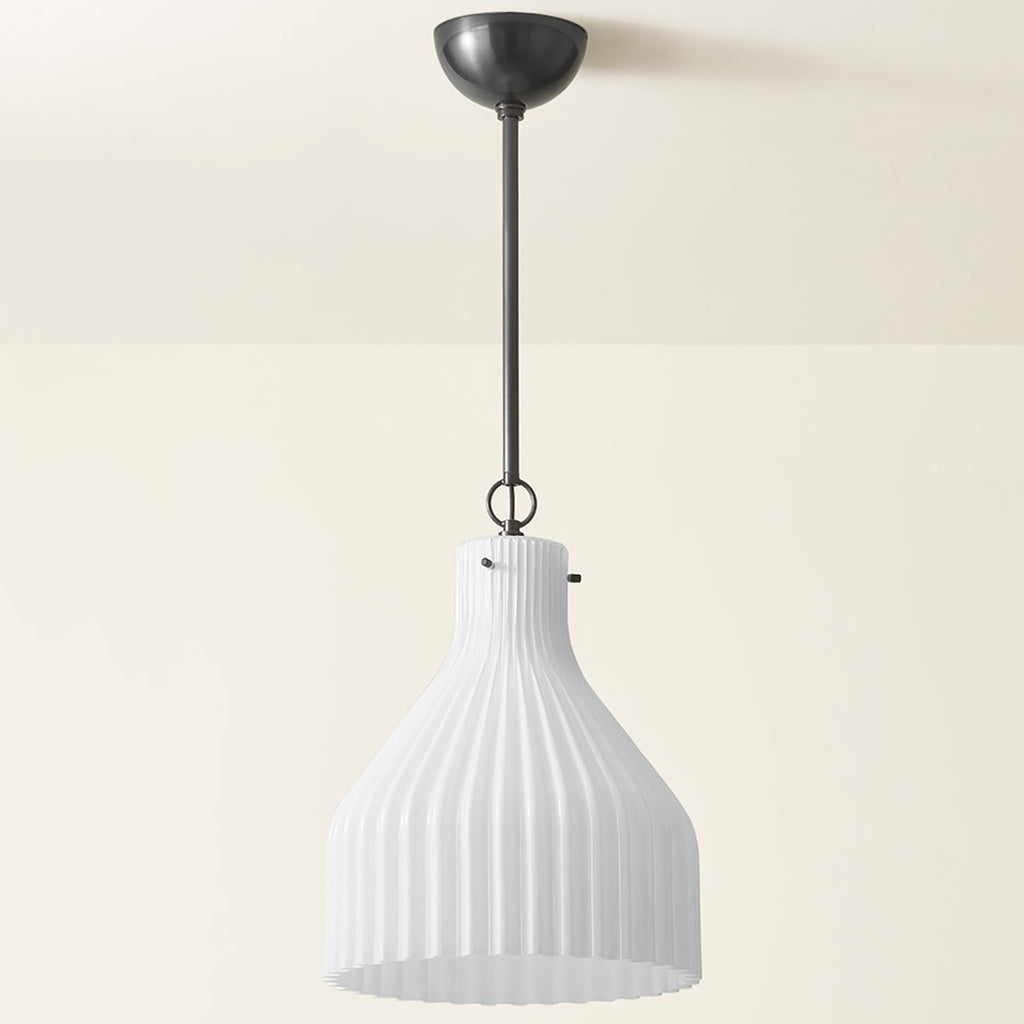 An ode to simplicity, Mitzi Corinthia Pendant adheres to Greek design principles with its slender and elegant ribbed silhouette. A Opal Glass shade gracefully extends and then flares, bringing a dose of decorative minimalist style into any space. Available in multiple sizes, Corinthia can be styled alone, or grouped above a countertop or along a hallway.