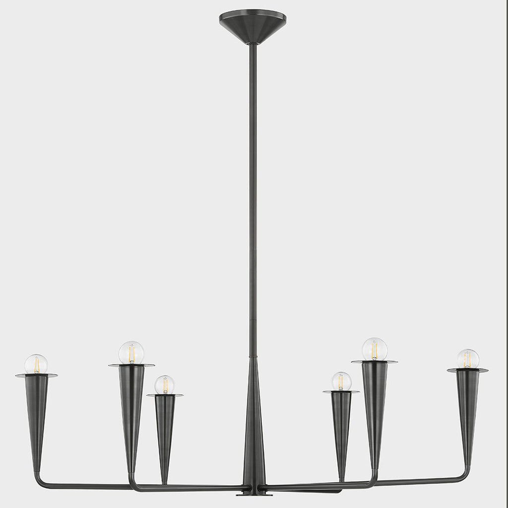Bring the drama with this botanical-meets-industrial beauty. Slender candlesticks resembling torches support clear glass orbs as they illuminate modern interiors with a sense of retro flair. Available as a sconce or chandelier in two sizes in either an Aged Brass or Old Bronze finish.