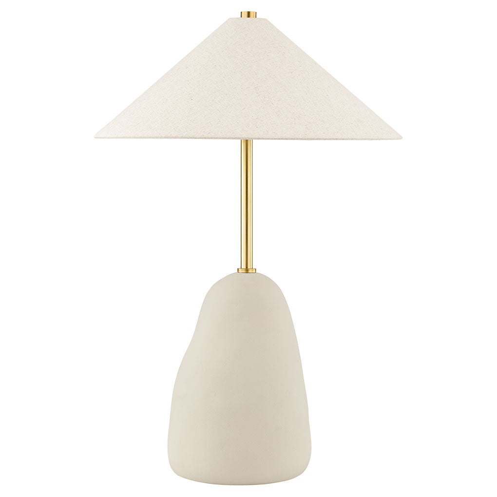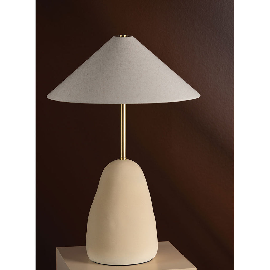 High-quality and exceedingly creative, Mitzi delivers a semi-nostalgic classic lighting collection with streamlined contemporary elements that instantly upgrade your space. Capturing the designer's heritage, the Mitzi Maia table lamp is both intimate and intriguing. The perfectly imperfect ceramic base represents a Brazilian mountain, and the angular shade evokes the roof of a traditional Korean home. Aged brass accents give this natural, neutral beauty a hint of shine.