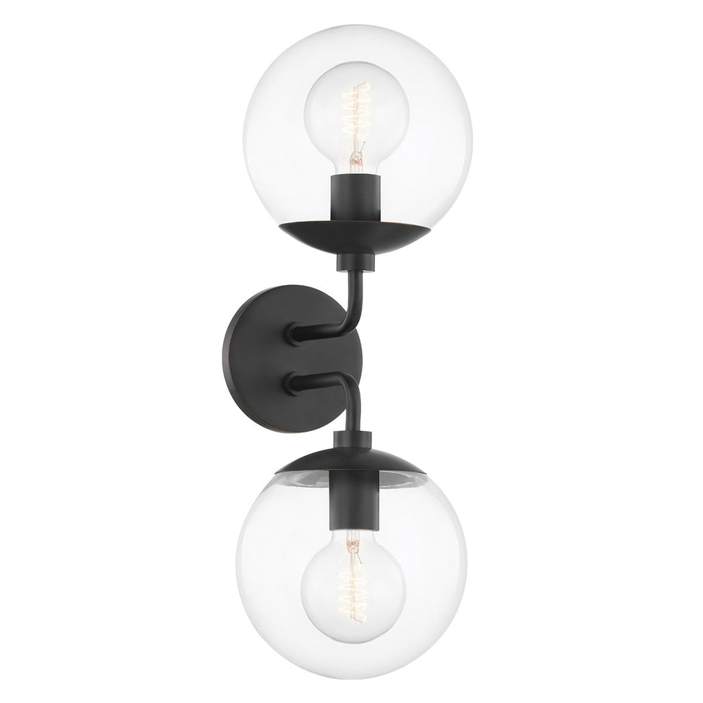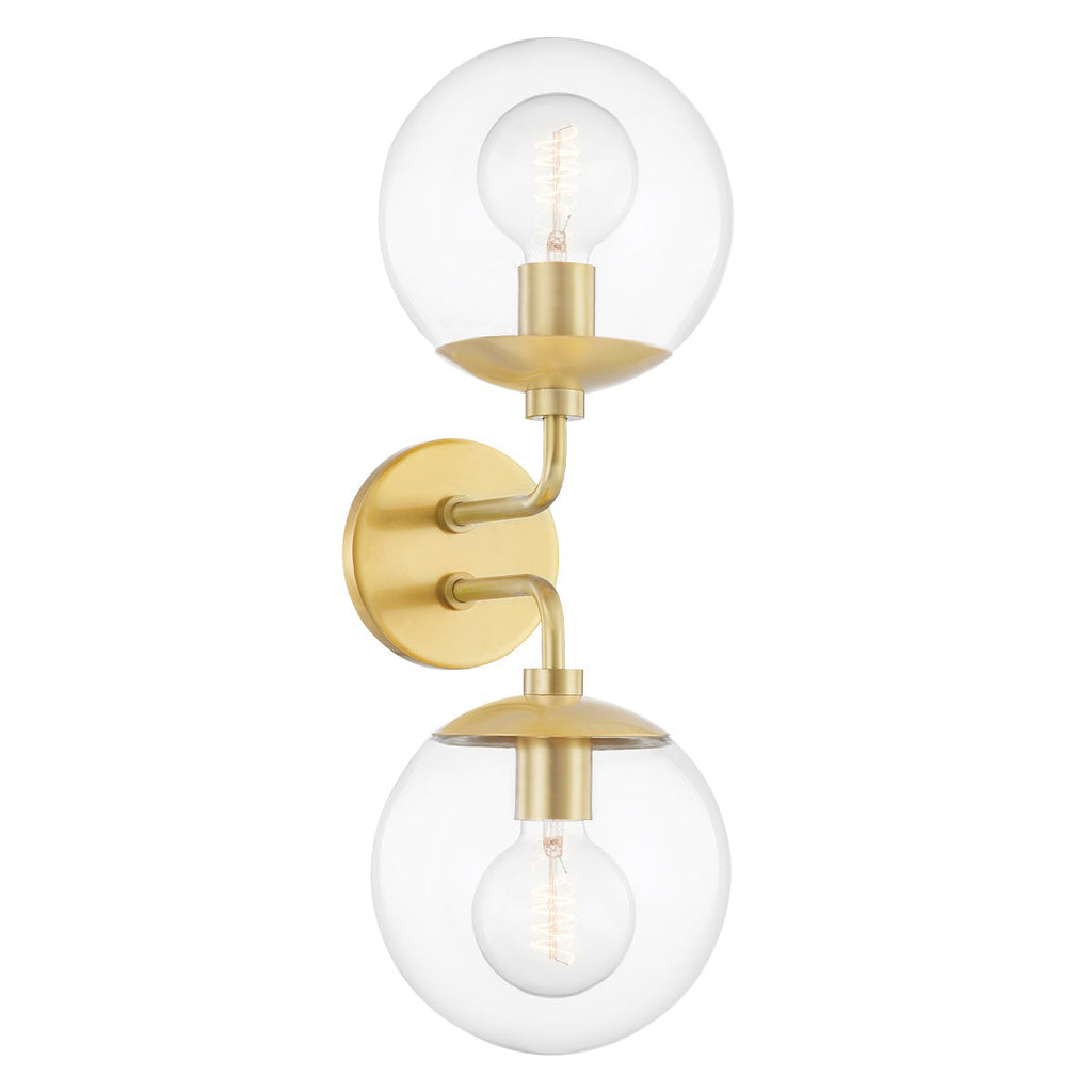 High-quality and exceedingly creative, Mitzi delivers a semi-nostalgic classic lighting collection with streamlined contemporary elements that instantly upgrade your space. Discover the statement light fixture your entryway or dining room is missing with a chandelier by Mitzi, delivering contemporary classic style within reach. A classic silhouette gets an update. Clear incandescent bulbs inside clear globe shades make the Mitzi Meadow 2-light wall sconce the clear choice anywhere you want to add bright, beautiful light. A flash of metal at the shade cap and bulb base gives the piece a splash of color.