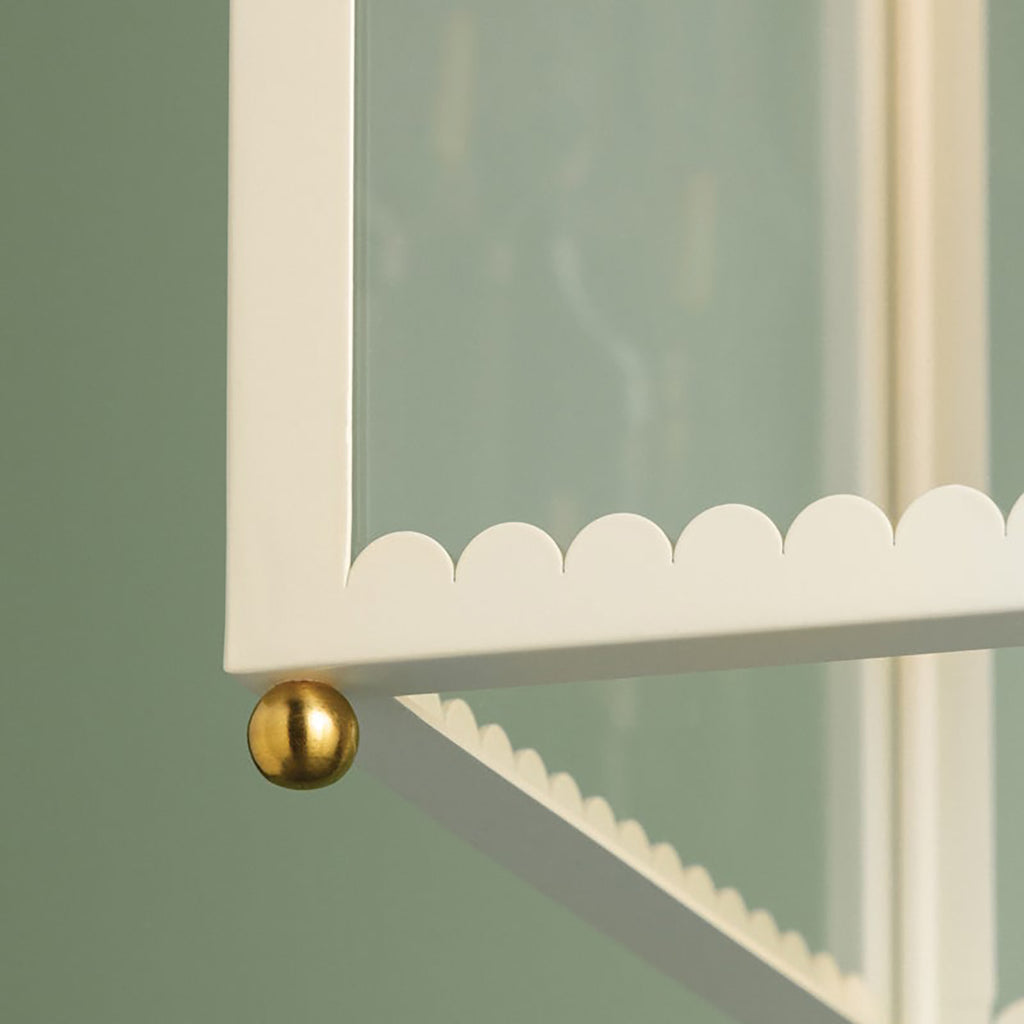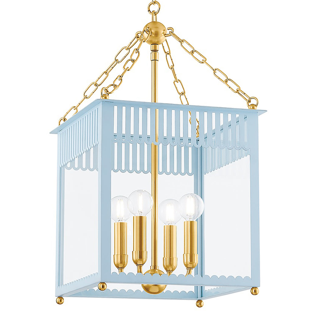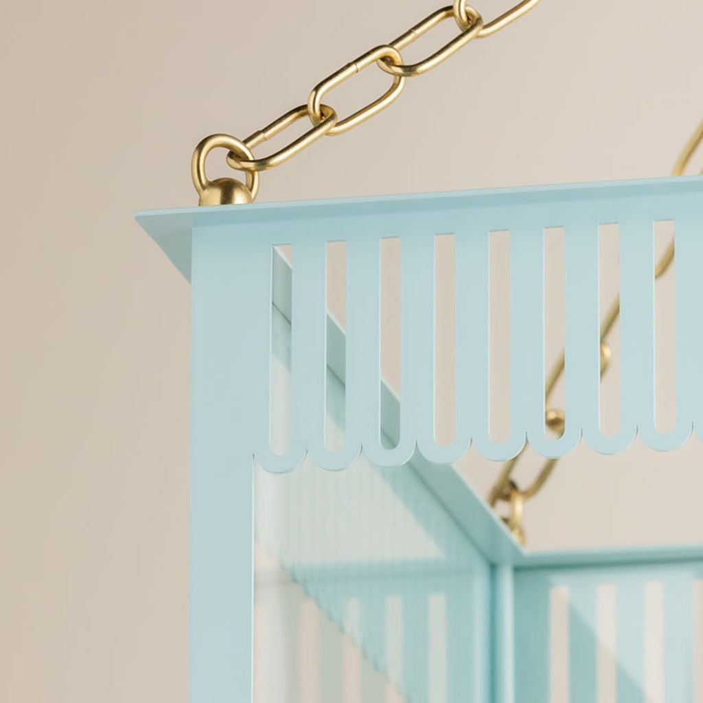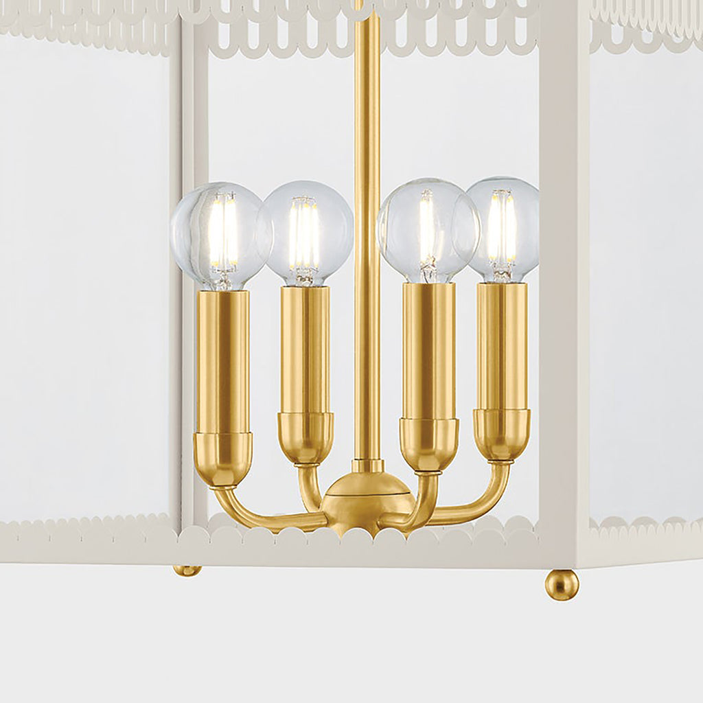 Embracing the grand millennial trend, Mitzi Rosalie presents a fresh take on a traditional box lantern. Scalloped and slatted details elevate the clean lines of this 4-light fixture. Additional decorative elements, like the Aged Brass sphere and delicate chainwork, add to the playful composition. Mitzi Rosalie is available in two sizes and two colors, Soft Cream or Soft Arctic Blue.