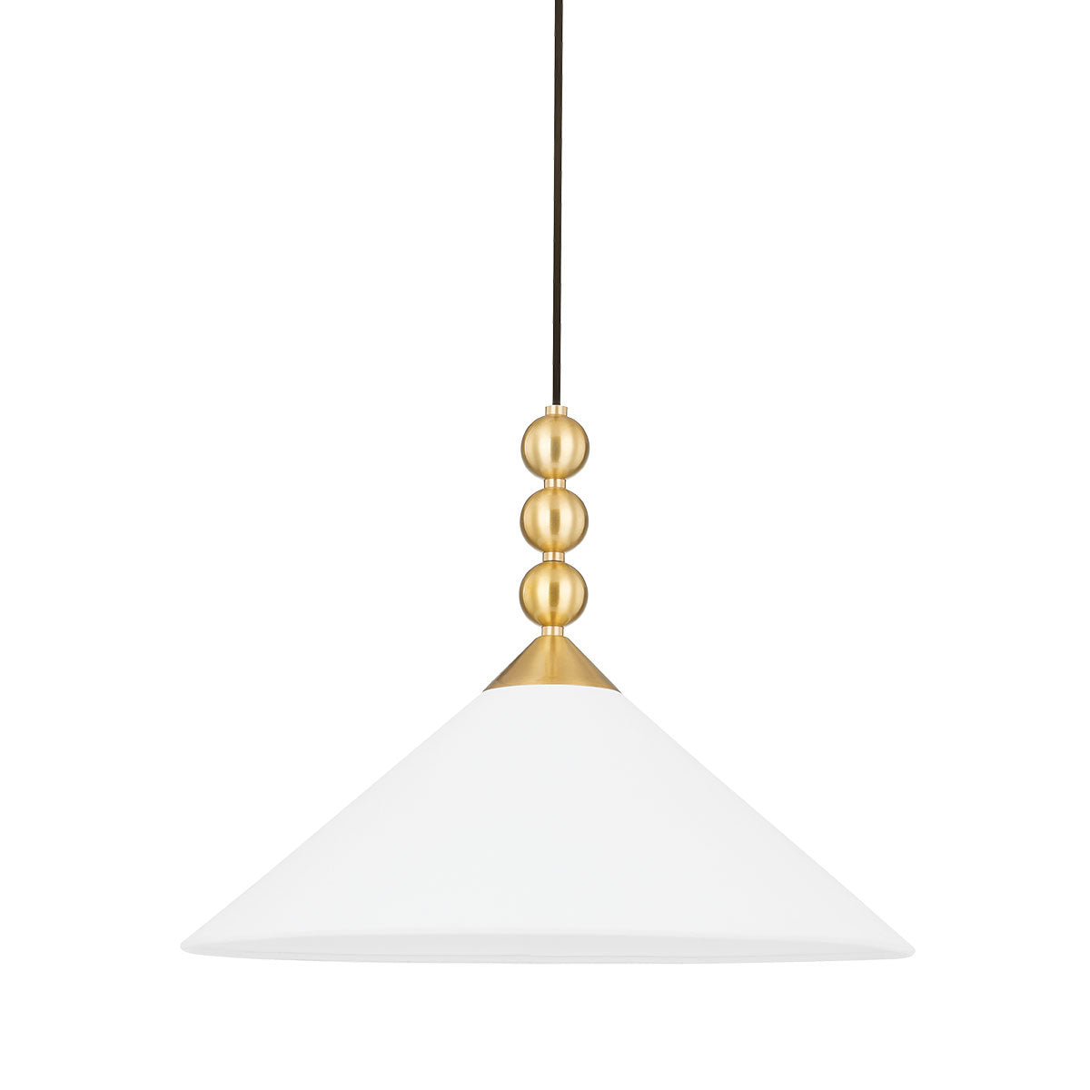 High-quality and exceedingly creative, Mitzi delivers a semi-nostalgic classic lighting collection with streamlined contemporary elements that instantly upgrade your space. Sang is jewelry-inspired lighting at its finest. The sleek, curved arms and decorative gold balls, both solo and in groups of three, give the overall silhouette a definite drop earring vibe. Finished in aged brass with a white linen shade and available as a pendant, wall sconce or floor lamp, there's a Sang to accessorize every room.