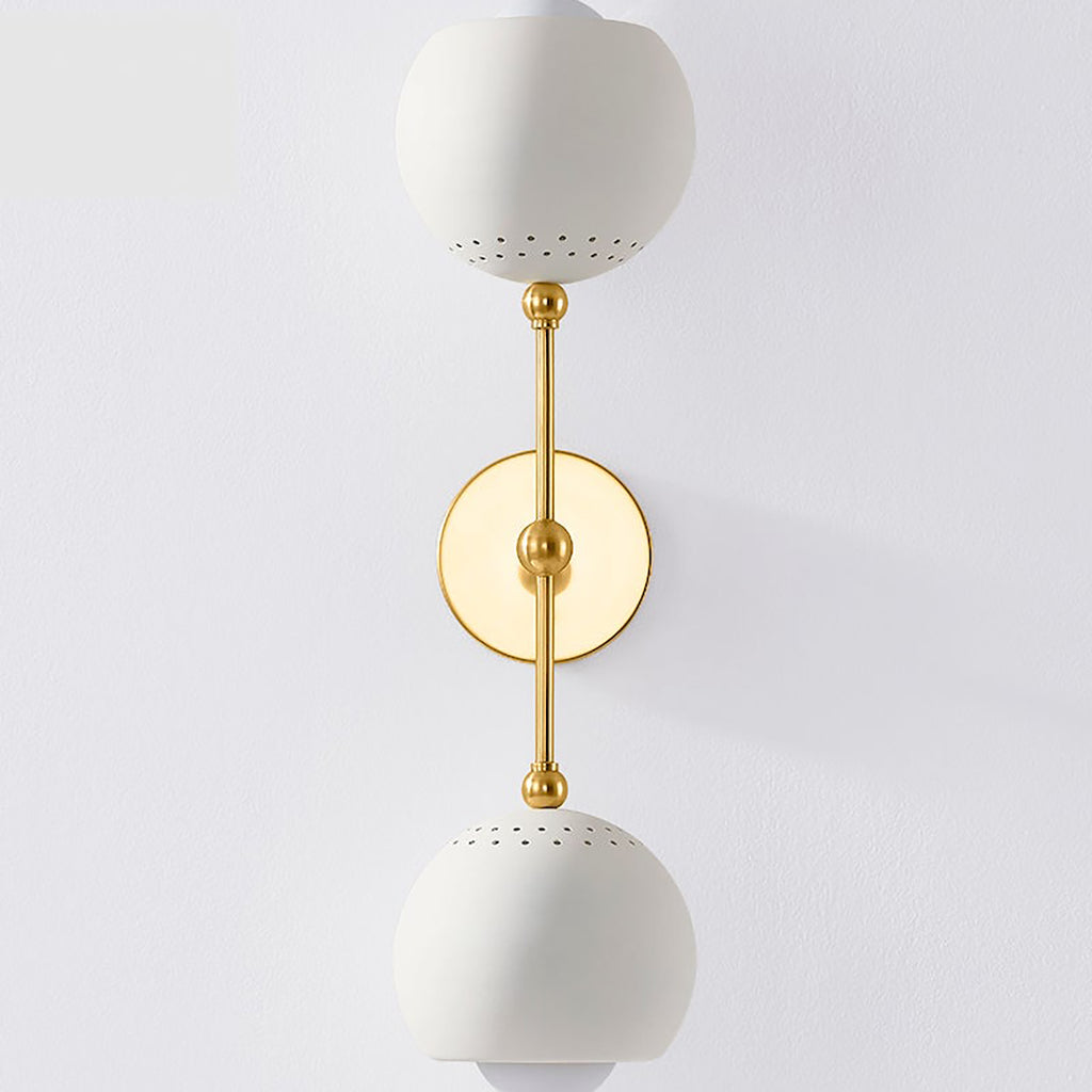 An imaginative twist on a mid-century modern design, Mitzi Saylor has a modernized atomic look with large orb shades, an Aged Brass framework, and subtle vintage details. The swivel arms of this chandelier can be configured at any angle, providing control over the direction of light. Perforation details add a pop of interest to the shades. Mitzi Saylor is available as a 6 or 8-light chandelier and a 2-light sconce.